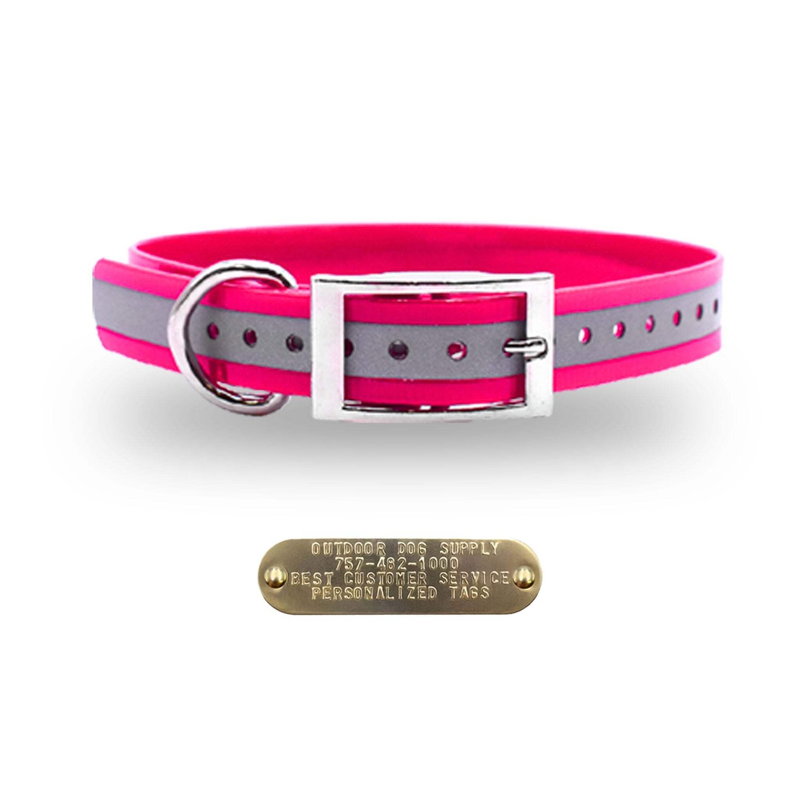 1 Reflective Premium Glow Tuff D Ring Dog Collar with Brass Name Plate