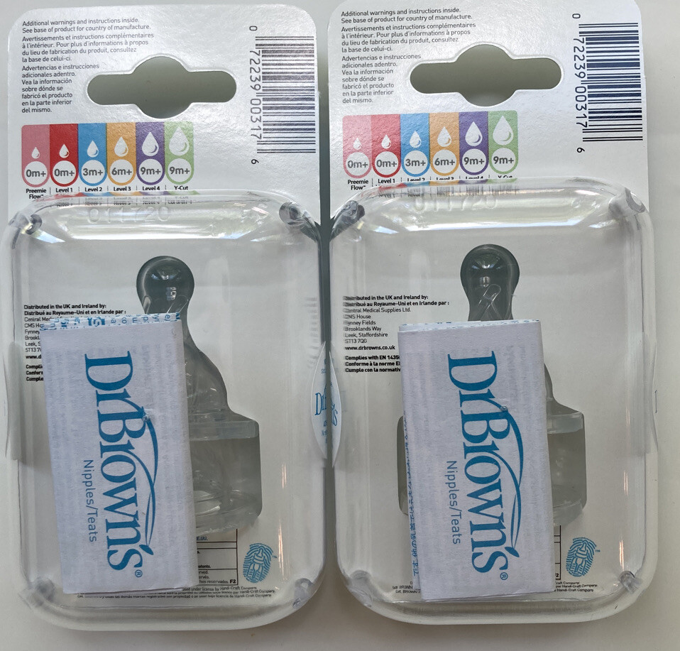Dr. Brown's Natural Flow Standard Silicone Bottle Nipple, Level 4, Lot Of 2 -NEW