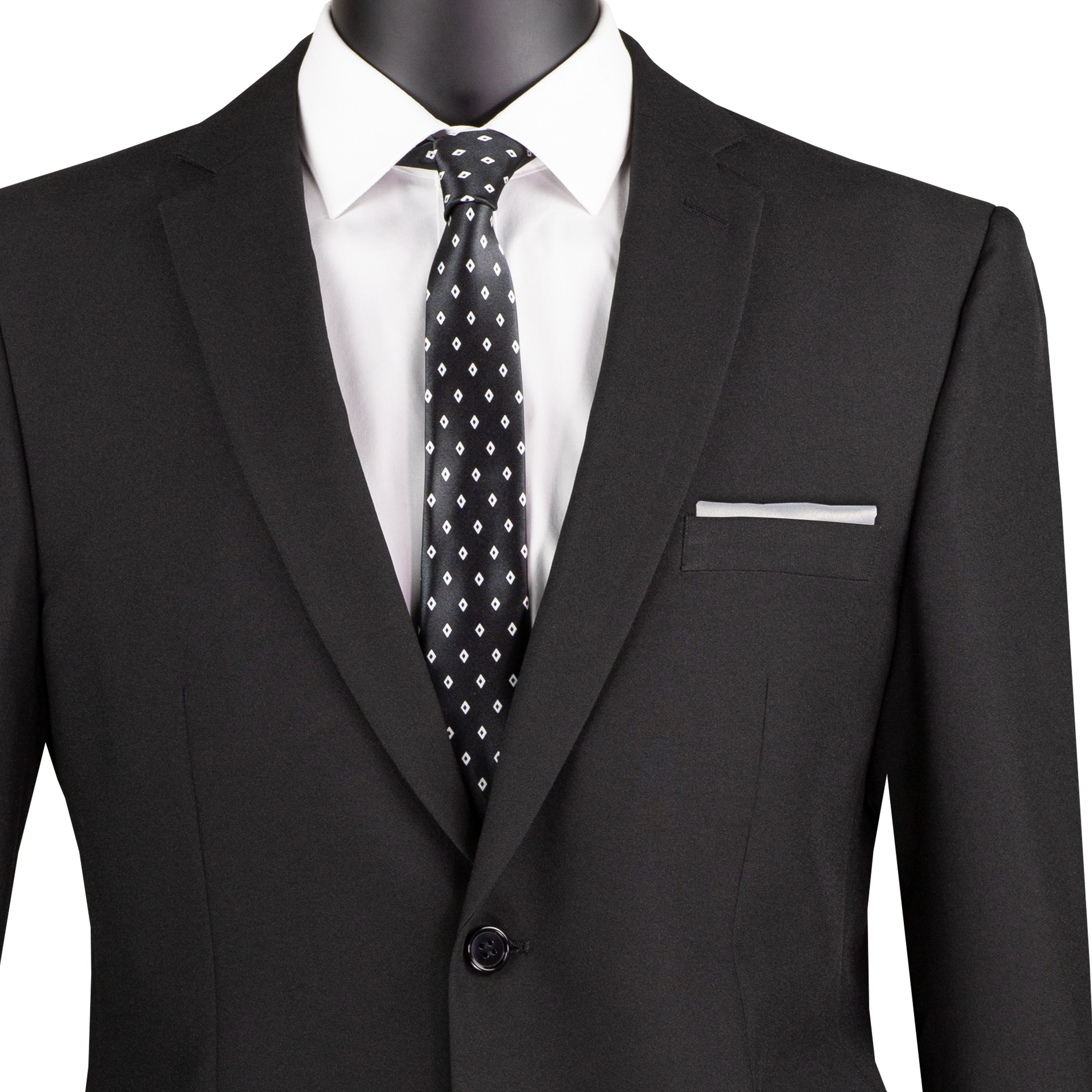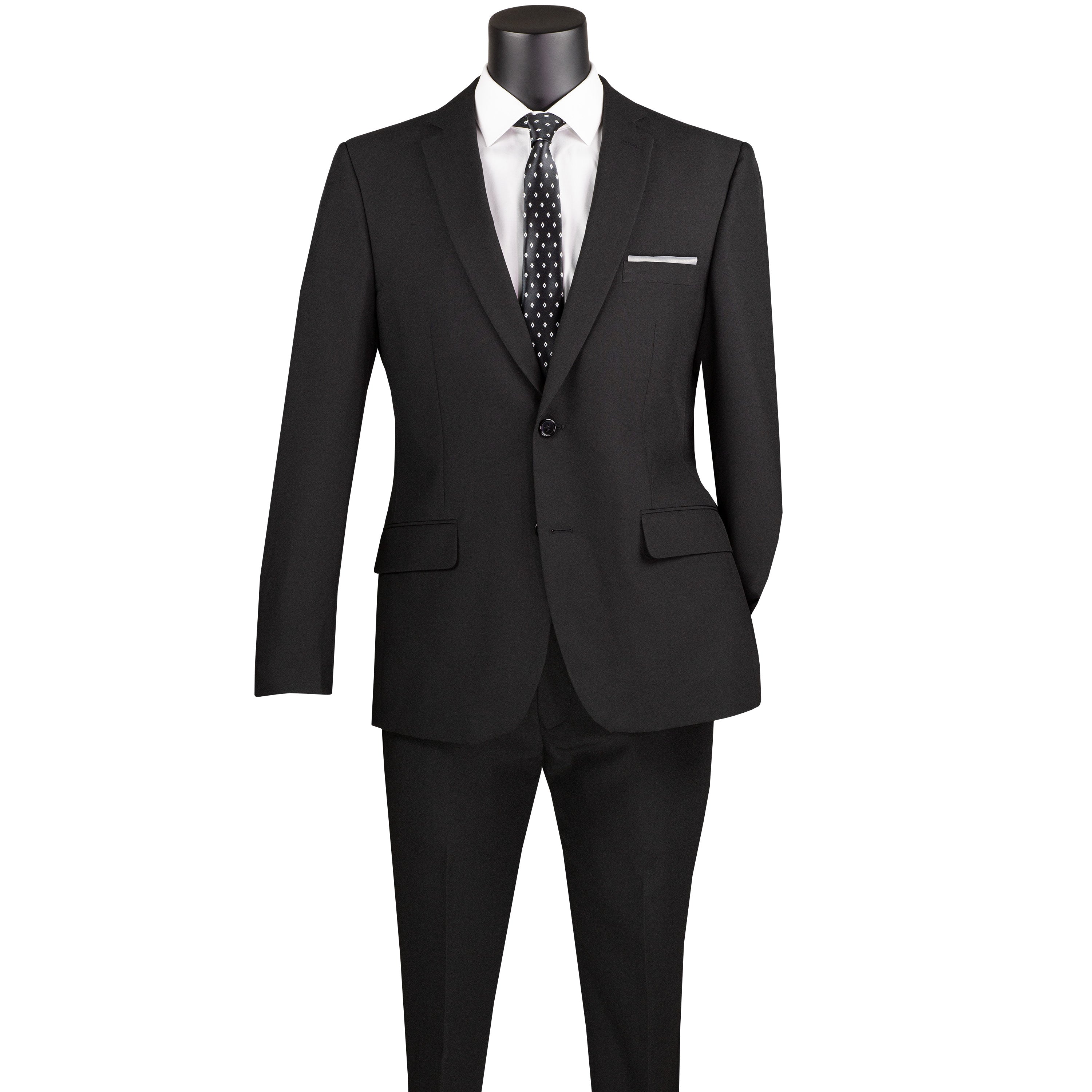 LUCCI Men's Black 2-Button Slim-Fit Poplin Polyester Suit, 34S-52L - NEW