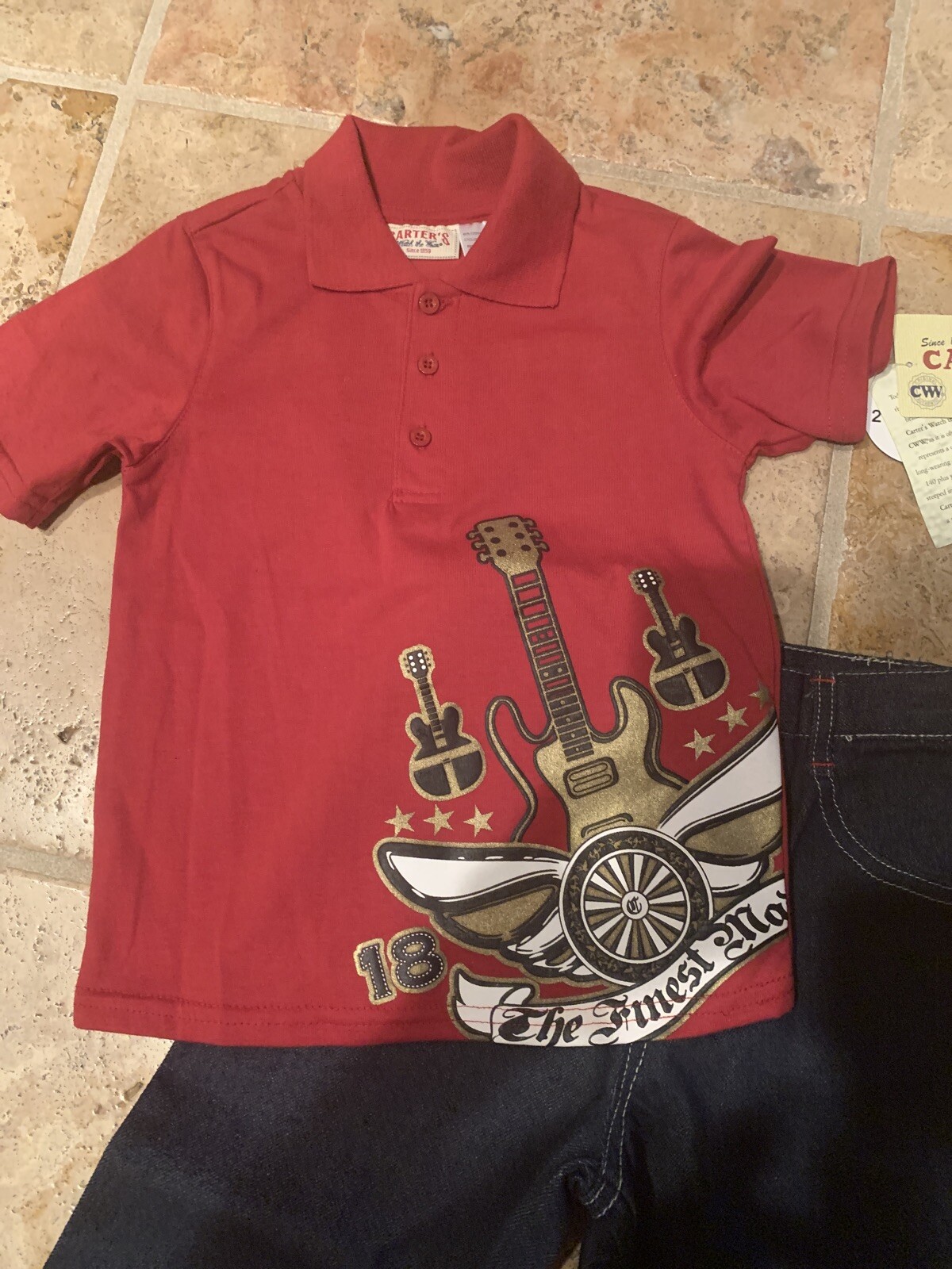 NEW Boys Set/ Outfit By Carter s - 4T, Polo Shirt, Jeans, Guitar
