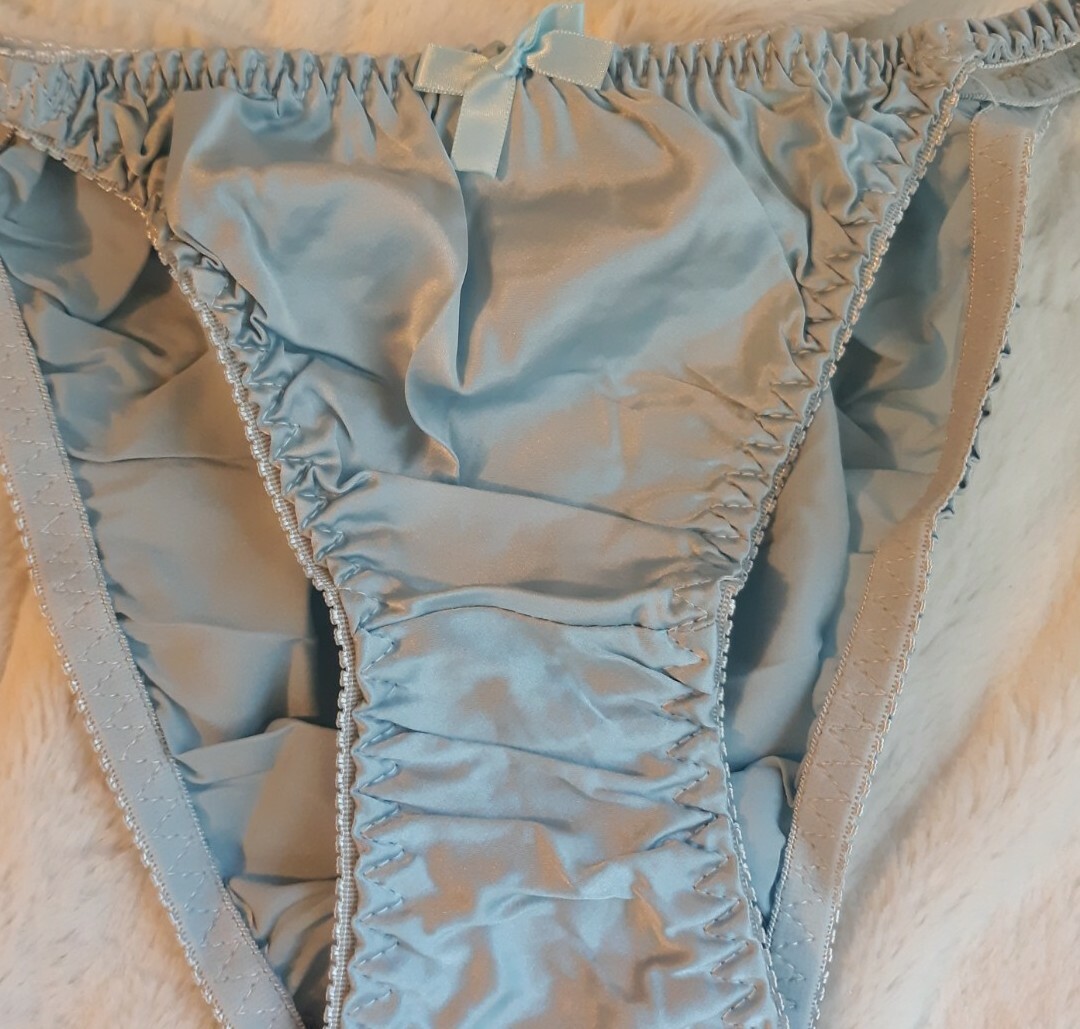 3 Pair Silk String Bikini Size 7 Lg Navy Blue.White Lt Blue l 57 US Seller