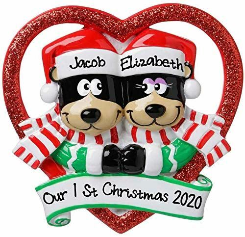 Personalized BLACK BEAR COUPLE Christmas Hanging Tree Ornament HOLIDAY