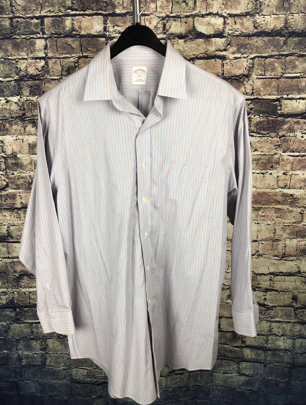 как выглядит BROOKS BROTHERS 346 MENS LONG SLEEVE DRESS SHIRT 16.5 ALL COTTON PIN STRIPE фото