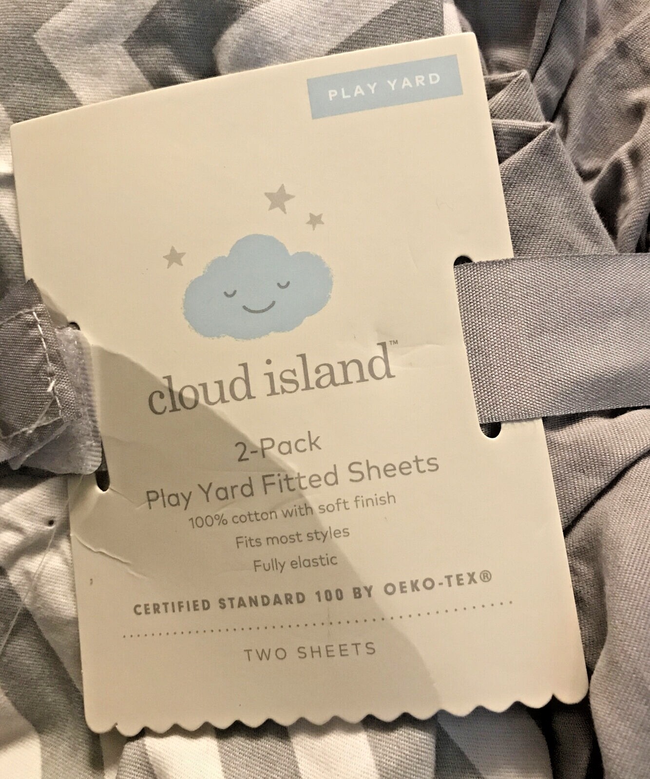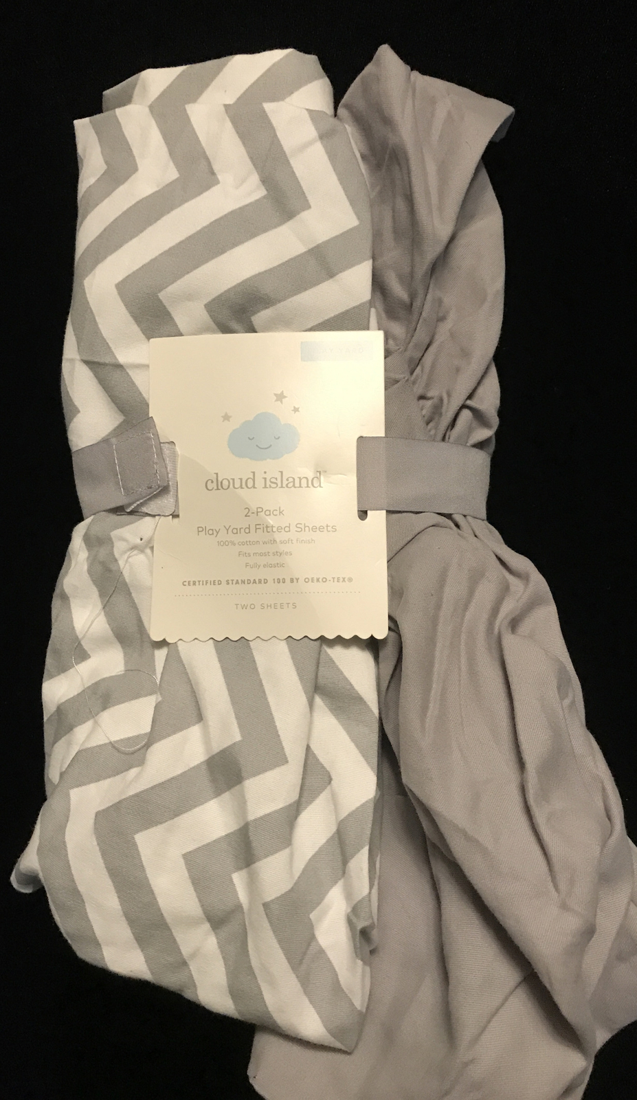 как выглядит Cloud Island Play Yard Fitted Sheets 100 Cotton 2 Pack gray 27"x39" 271 фото