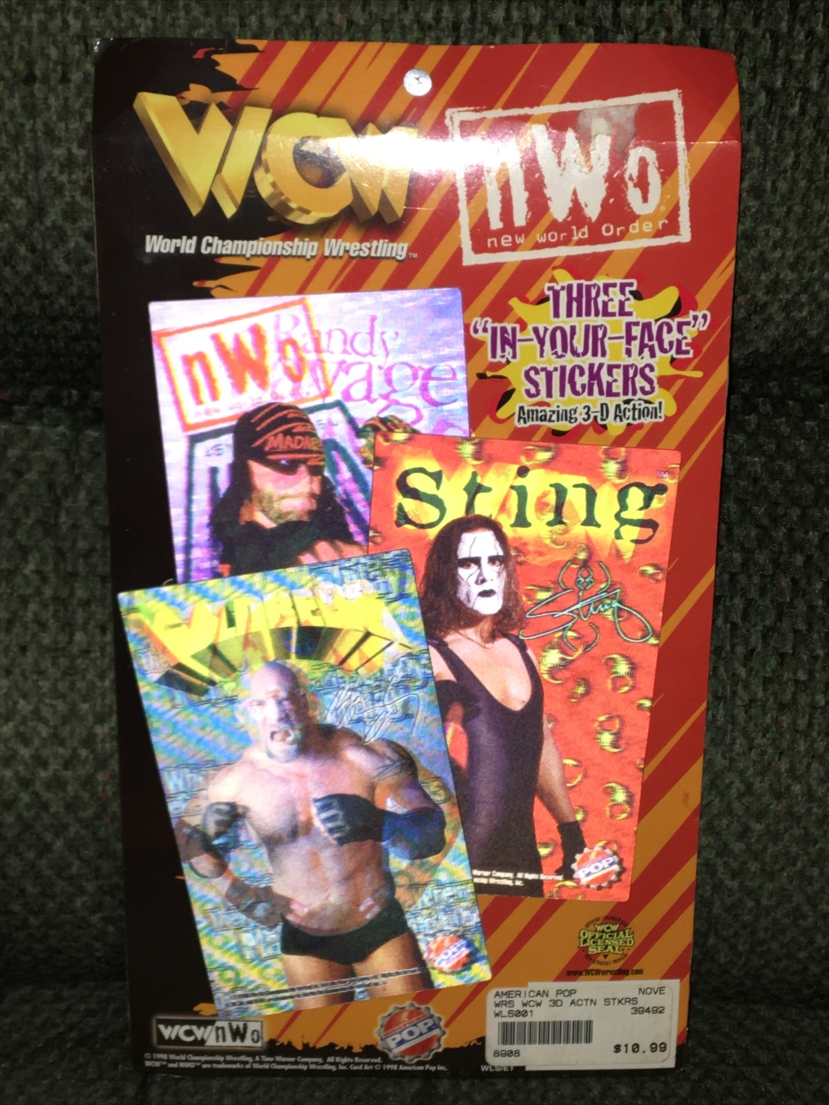 как выглядит WCW NWO Holographic 3-D Lenticular Motion Stickers GOLDBERG STING MACHO MAN NEW фото