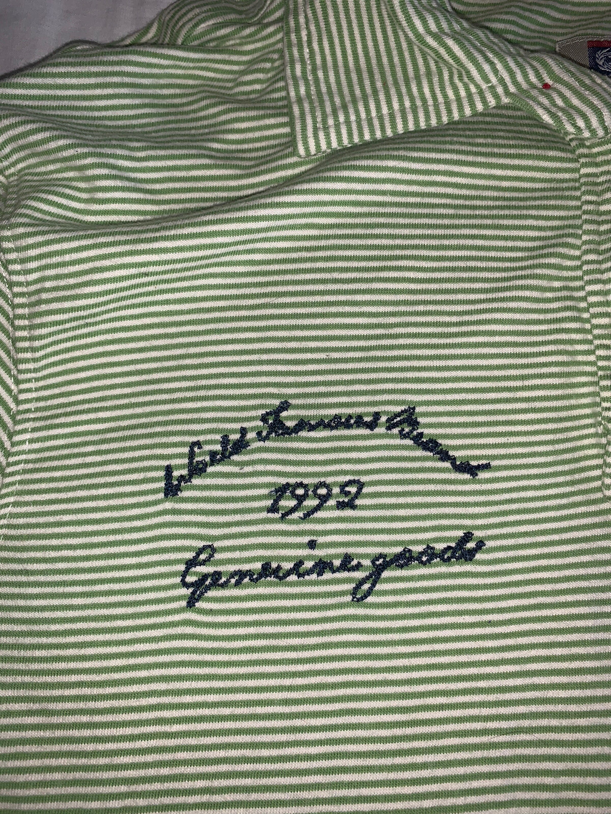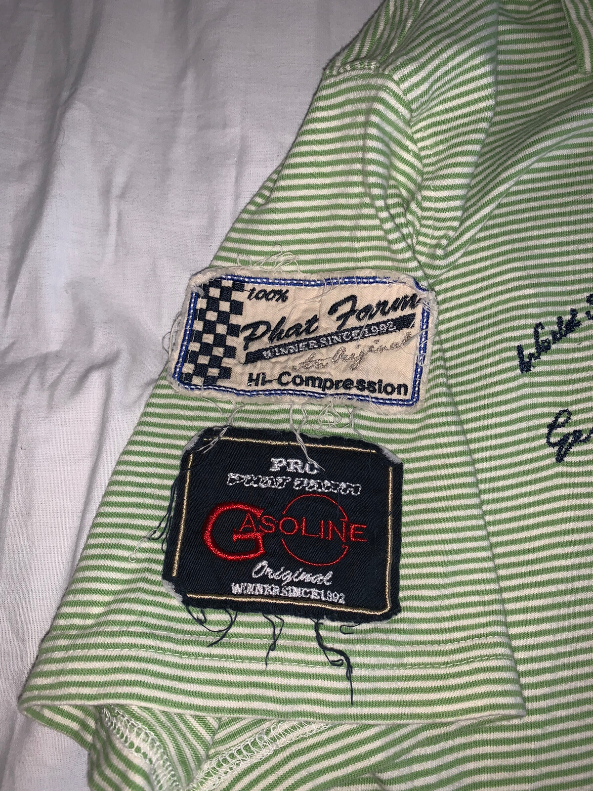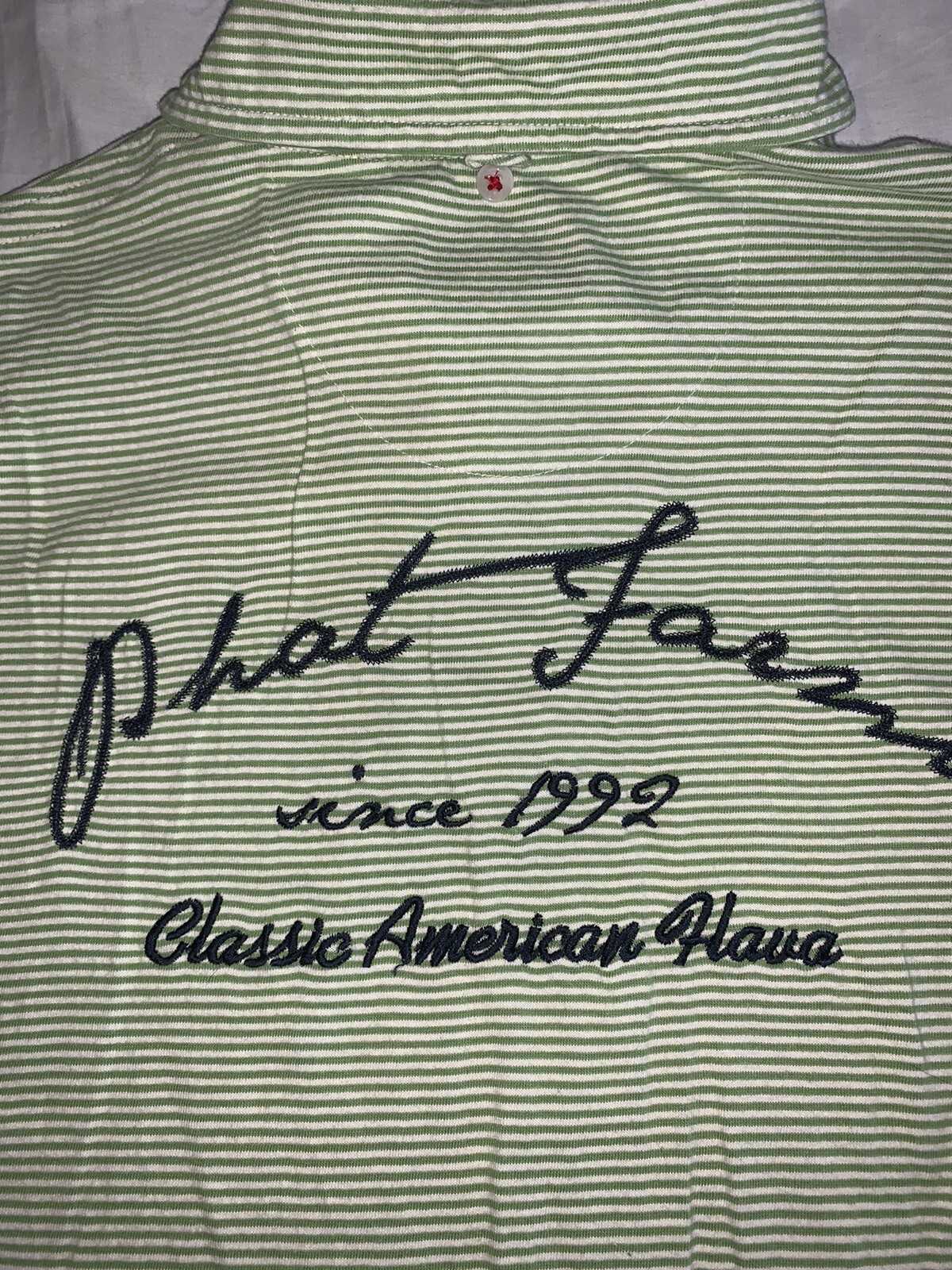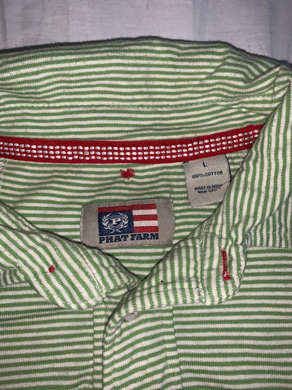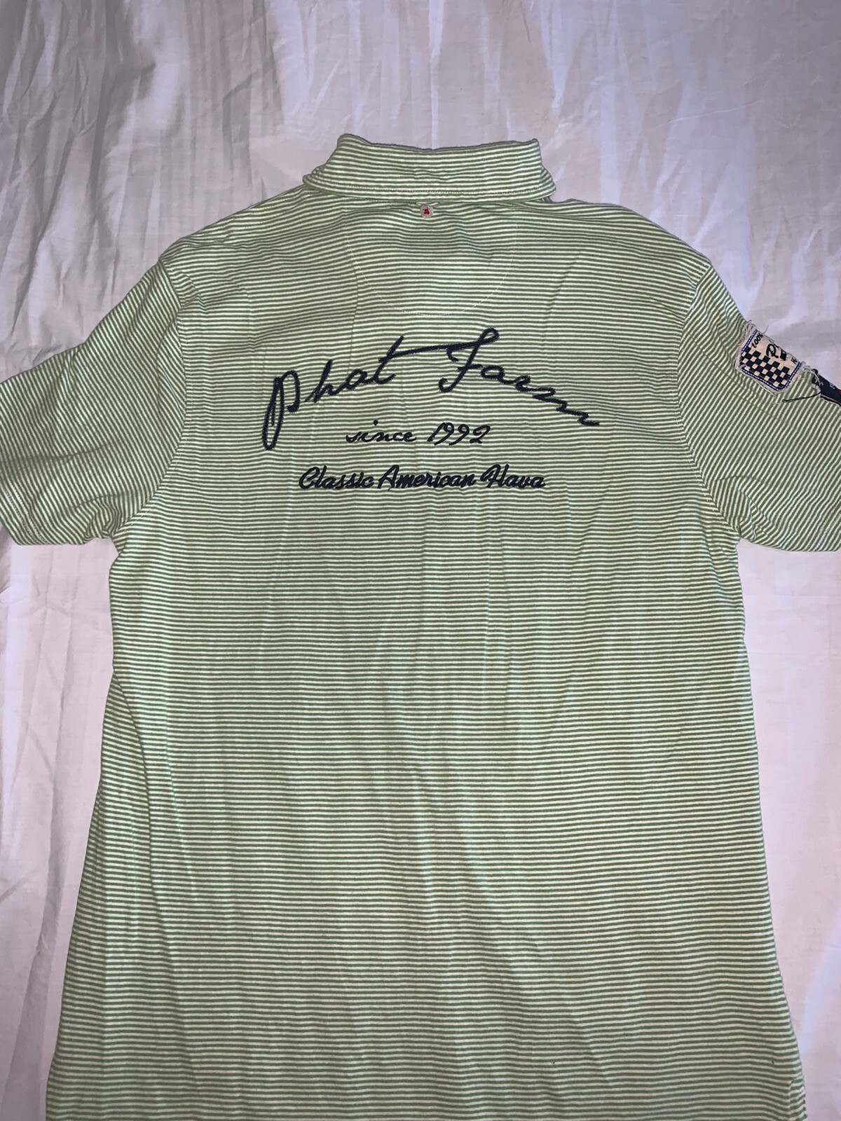 как выглядит Vintage Phat Farm Mens Green Striped Polo Style Embroidered Patches Size L Bin9 фото