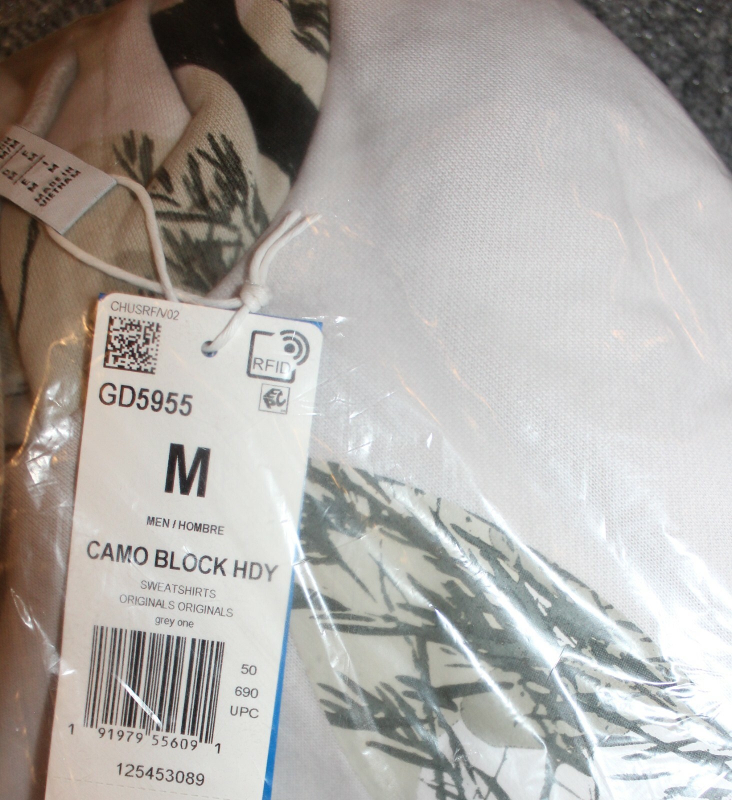 как выглядит NEW MENS ADIDAS ORIGINALS CAMO TREFOIL PULLOVER HOODIE MEDIUM GD5955 GRAY фото