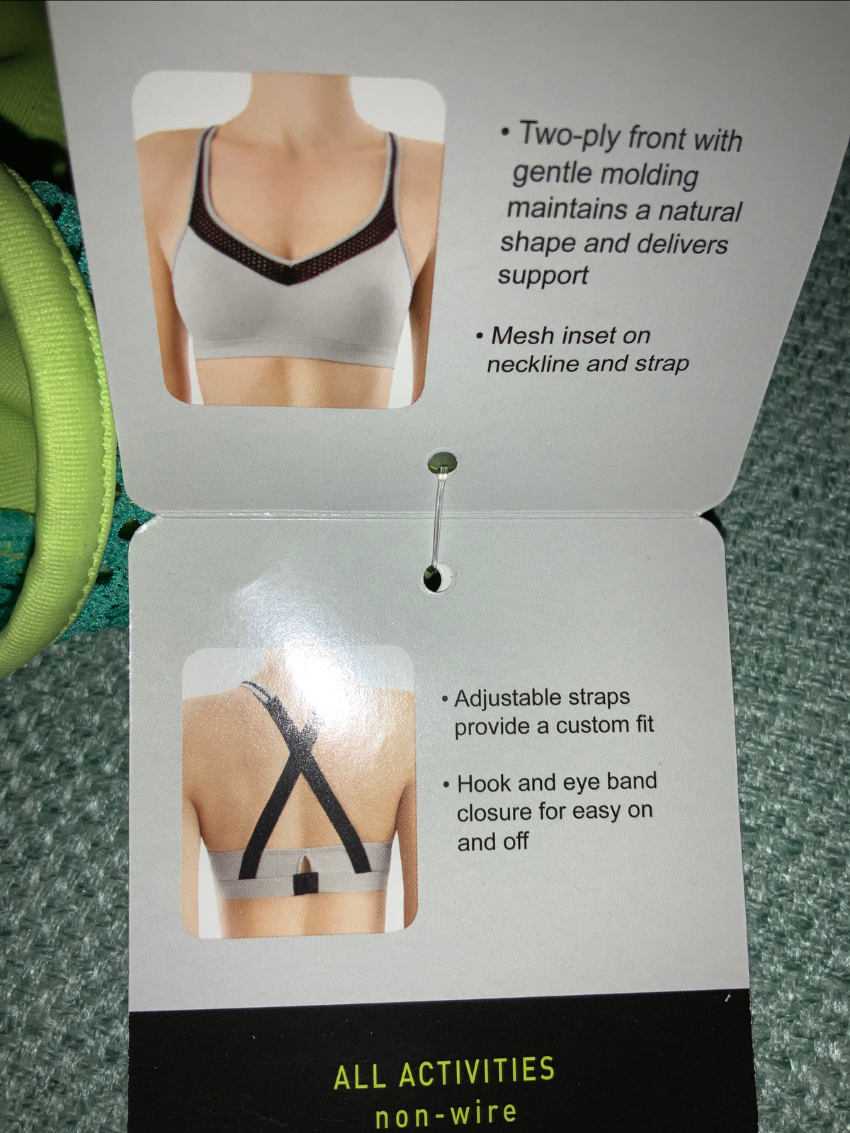 как выглядит NWT 55 Wacoal Cross Back Sports Bra Neon Green w/ Blue Accent 852214 SZ 32 C/D фото