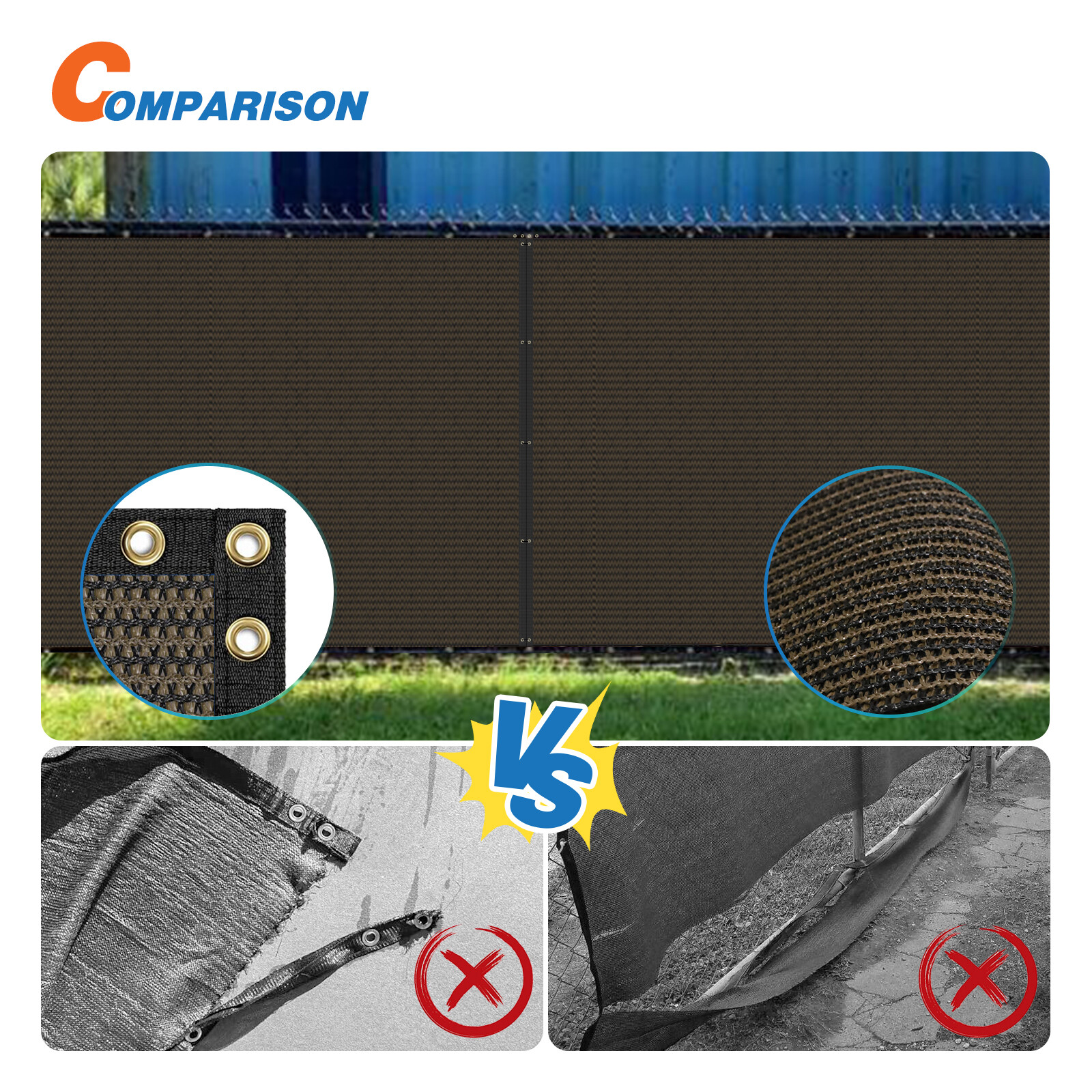 4' 5' 6' 8' Tall Fence Privacy Screen Windscreen Brown Shade Mesh Cover Garden