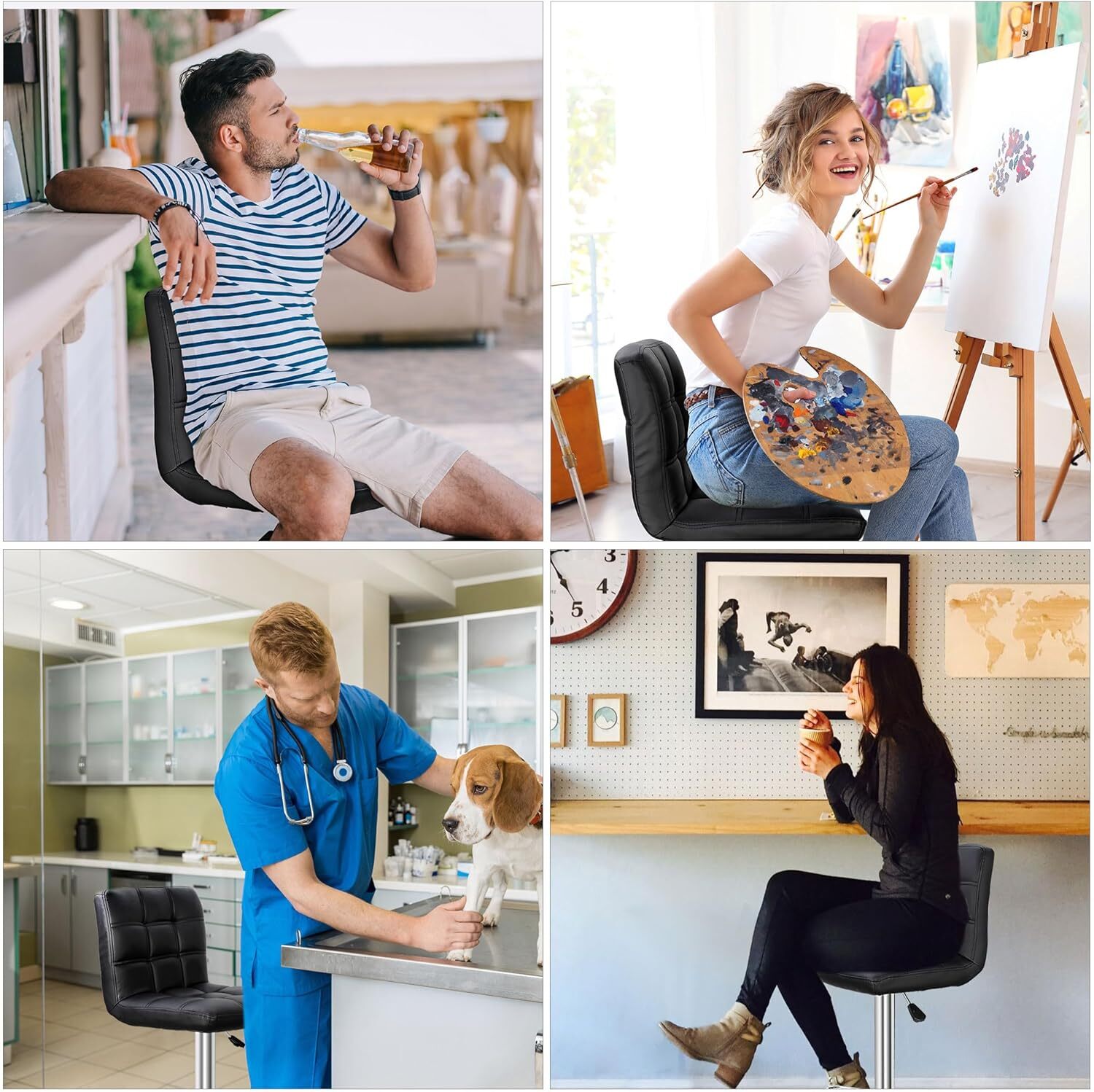Bar Stools Set of 4 PU Leather Swivel Adjustable Barstool with Square Back Black