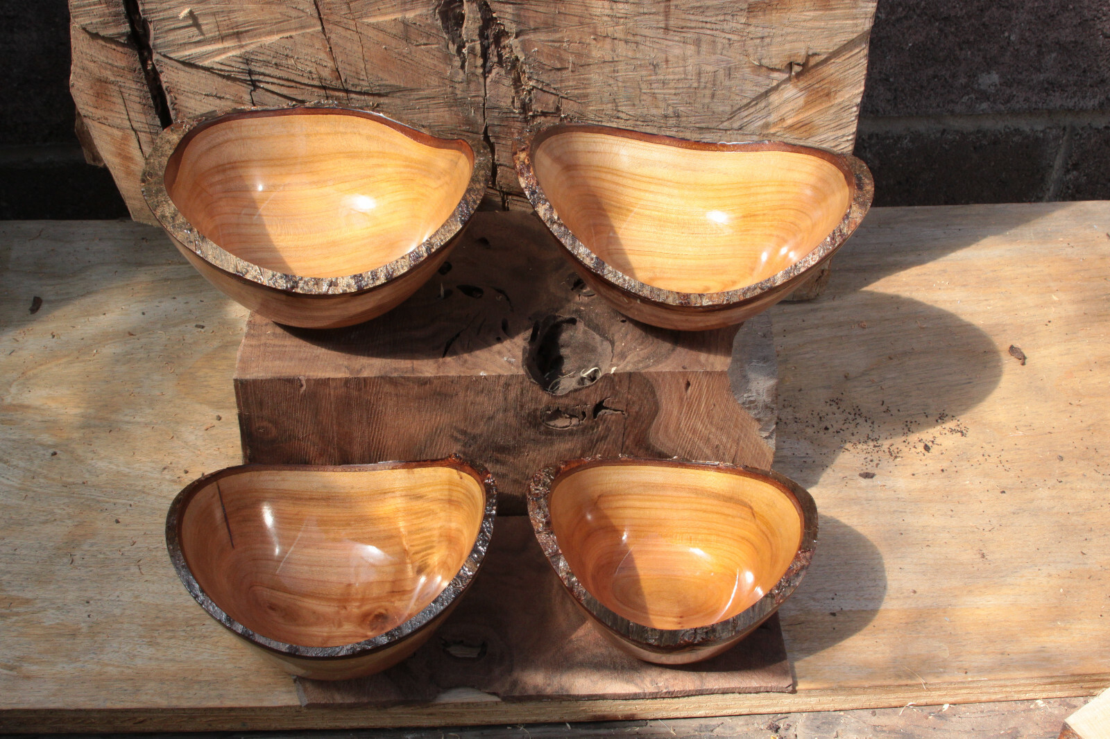 Four, Small, Cherry, WOOD, Hand Made, Lathe Turned, Wooden, Bowls, Bowl