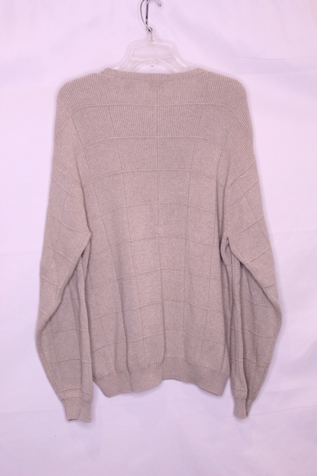 как выглядит ARROW TAN TEXTURED STRIPE CHECK CREW NECK LONG SLEEVE SWEATER SZ L R218 фото