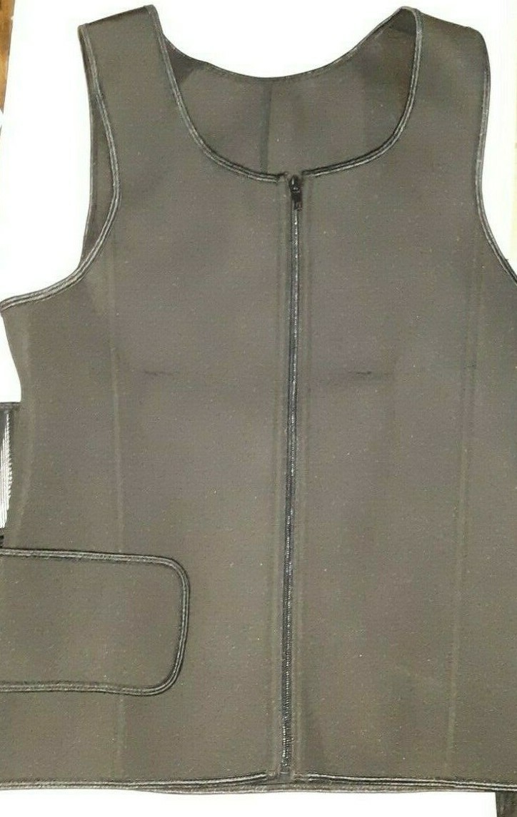UNISEX NEOPRENE ZIP UP SAUNA SWEAT VEST W/ ADJUSTABLE STRAPS XL BLACK uns nwop