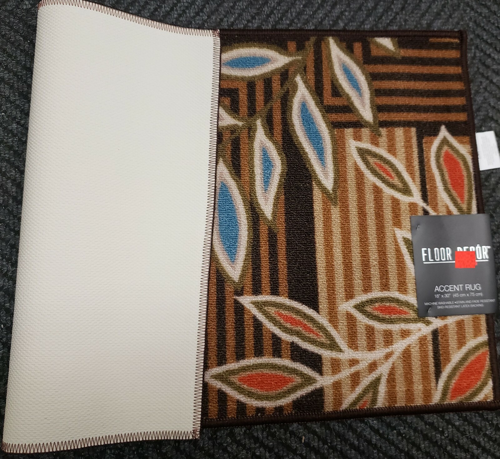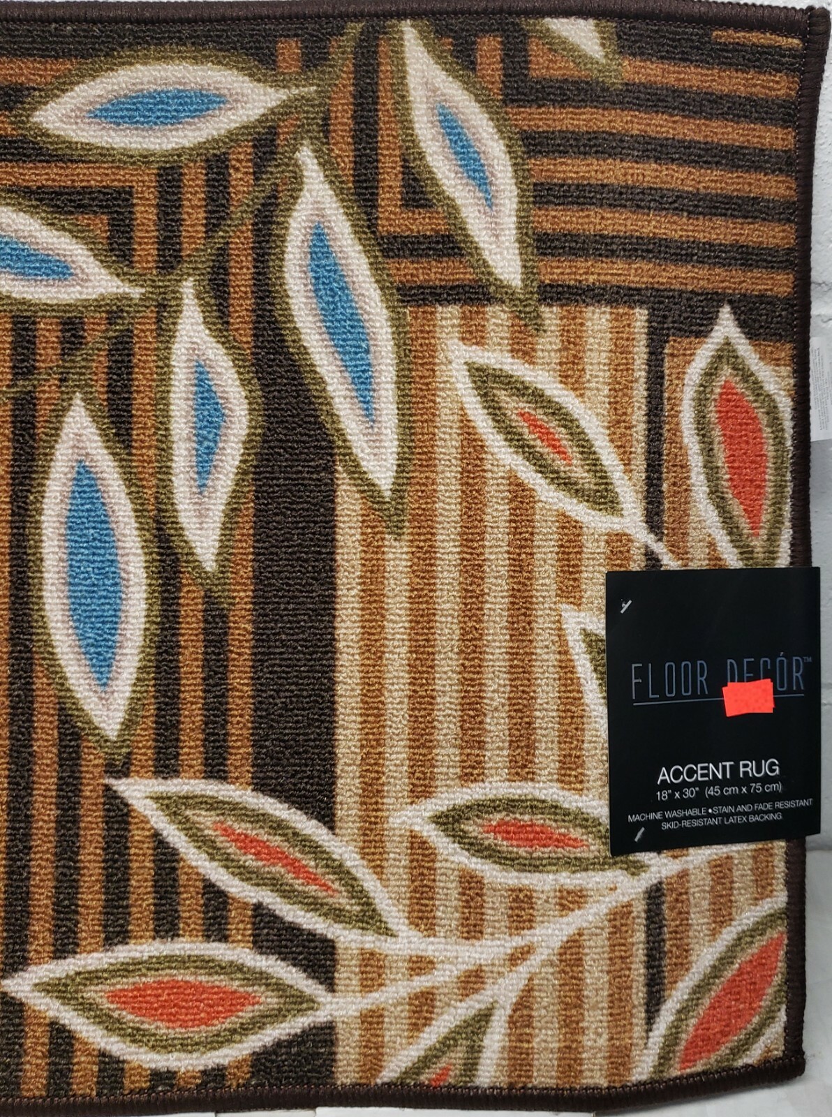 PRINTED NYLON KITCHEN RUG nonskid back 18 x 30 COLORFUL LEAVES 2 by FD