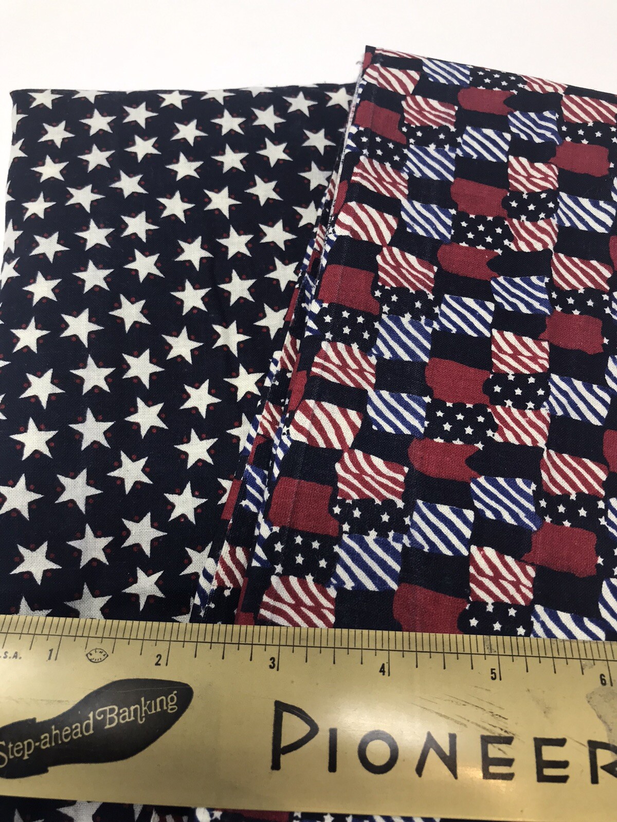 USA Fabric Lot 2 Pieces Patriotic Valor Stars Stripes Flag Cotton 1 Y Total F32