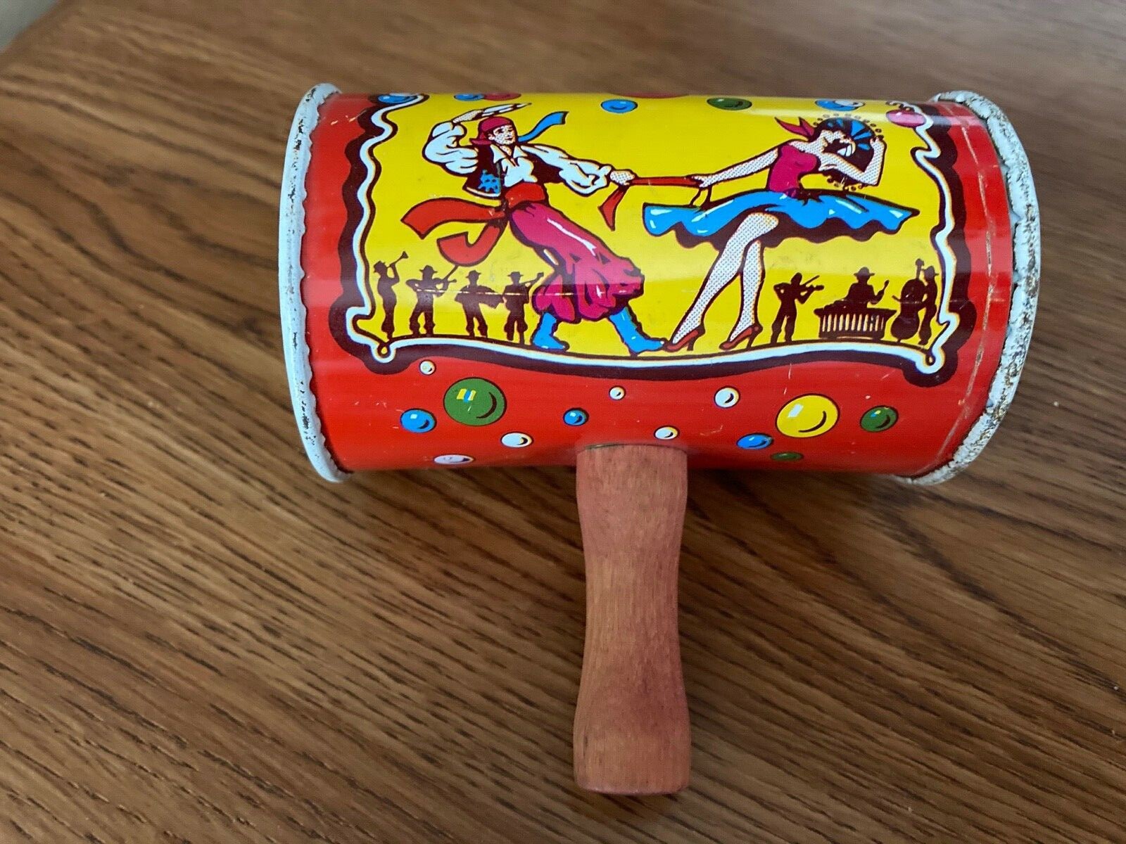 PAIR OF VTG KIRCHHOF LIFE OF THE PARTY NOISE MAKERS LITHO TIN TOYS