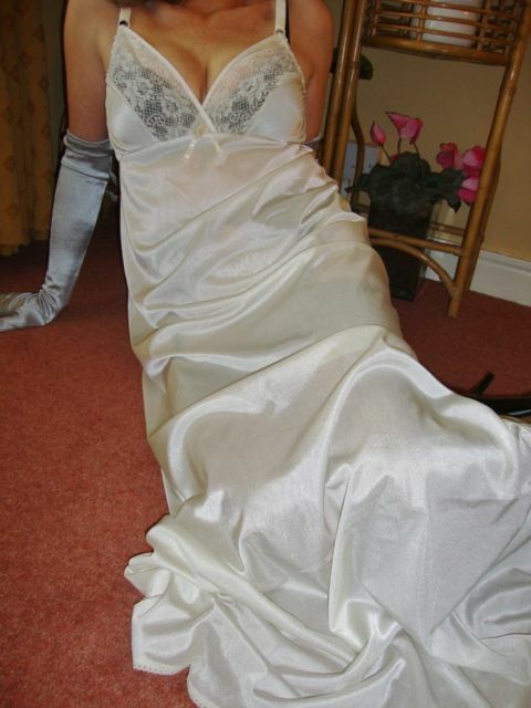 как выглядит White Silky Long Formal Full Length Bra Slip or Nightgown L-XXL BNWT фото