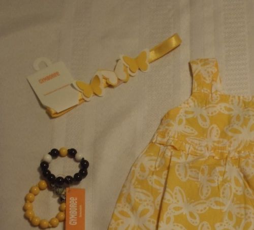 как выглядит Gymboree Yellow Black 18-24 Month Butterfly Shorts Shirt Bracelet Headband Set фото