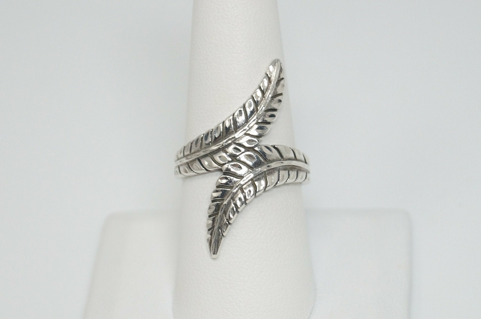 как выглядит Vintage Native American Signed Feather Wrap Sterling Silver Ring - Size 8.75 фото