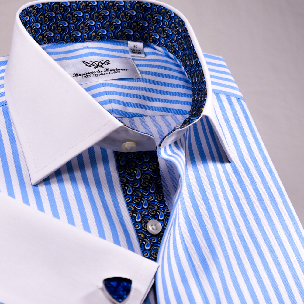 Light Blue Herringbone Contrasst Unique Designed Business Shirt In The Market