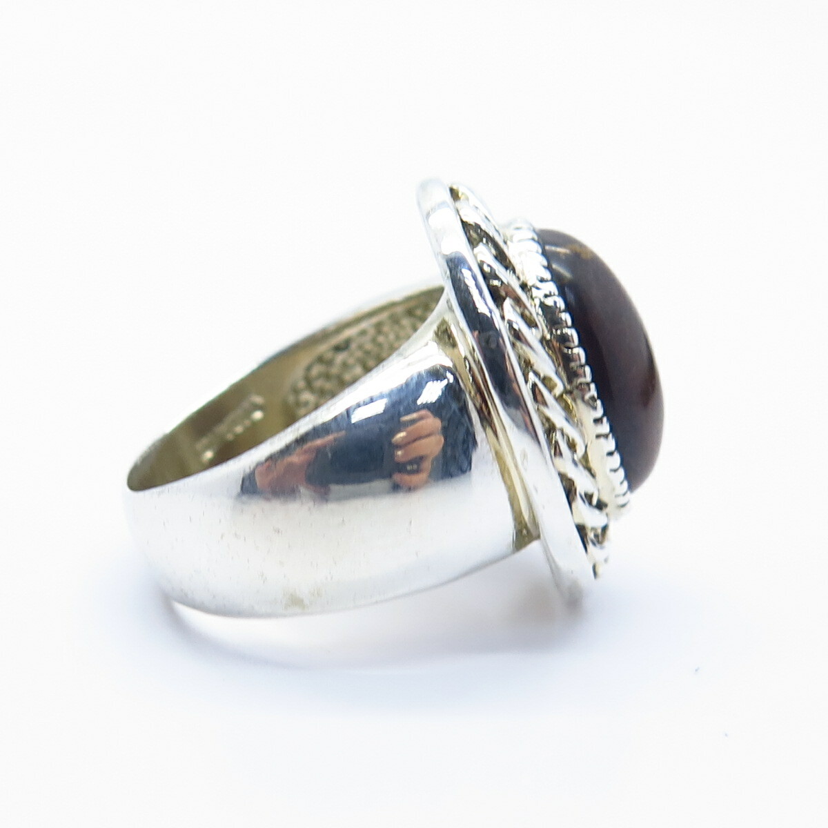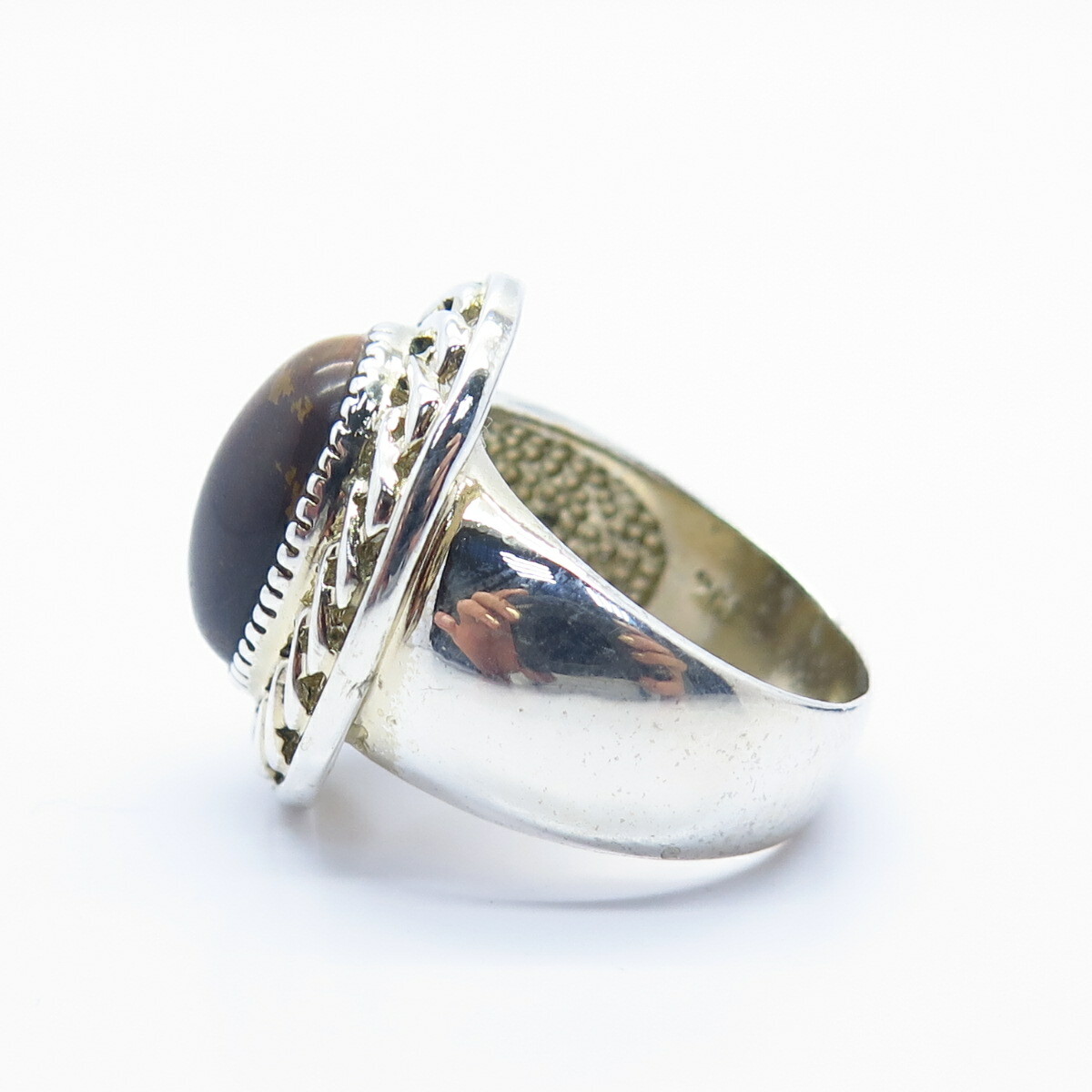 925 Sterling Silver Vintage Real Tiger Eye Gemstone Ring Size 6 3/4
