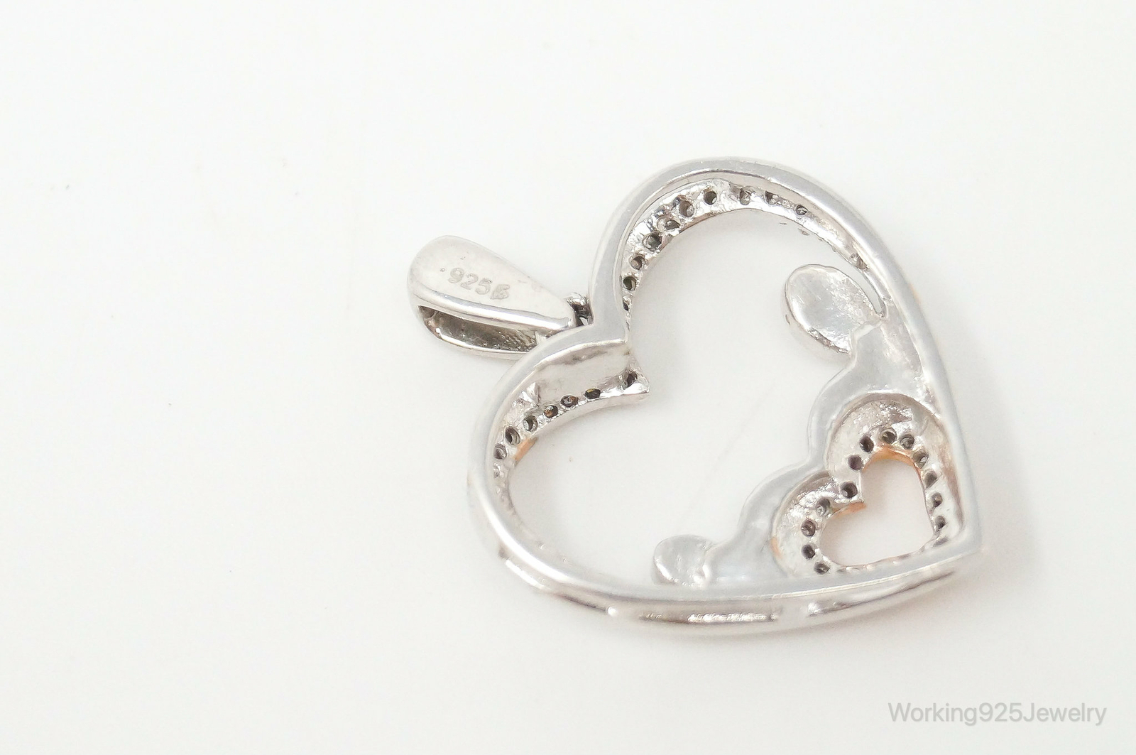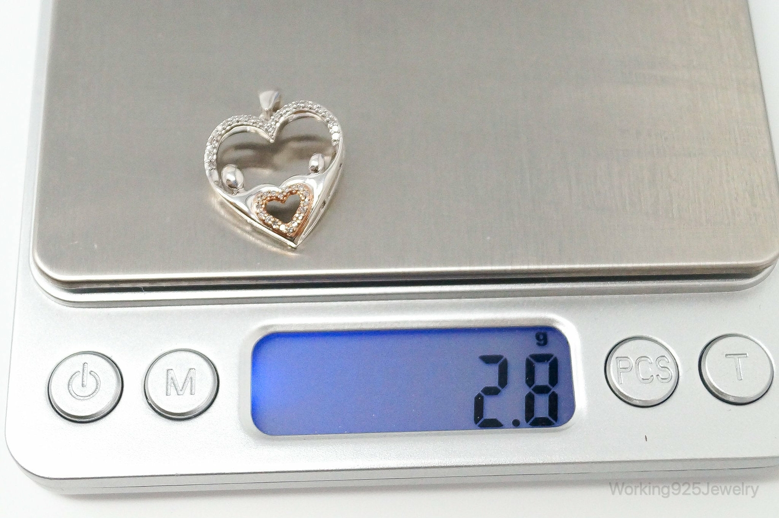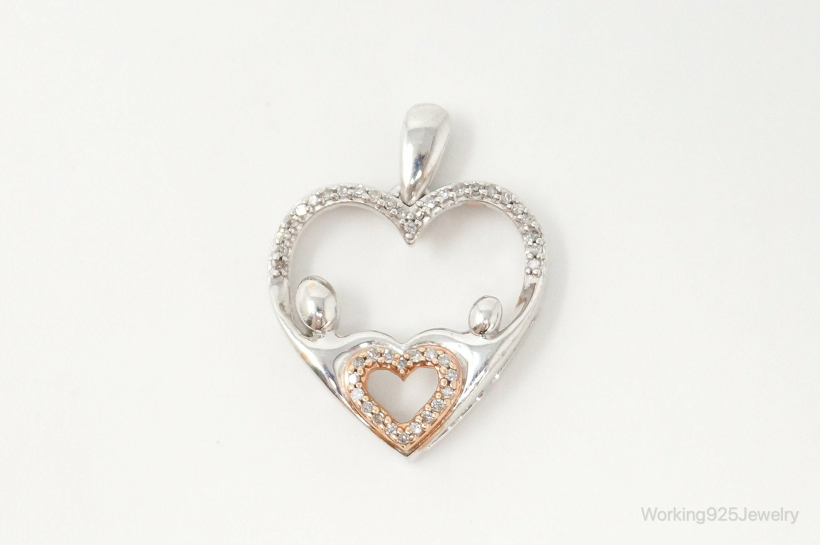 Cubic Zirconia Rose Gold Vermeil Sterling Silver Heart Necklace Pendant