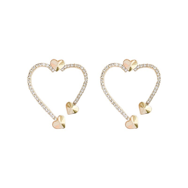 Love Heart Gold Stud Earrings for Women,Heart Earrings,Cubic Zircon,Jewelry Gift