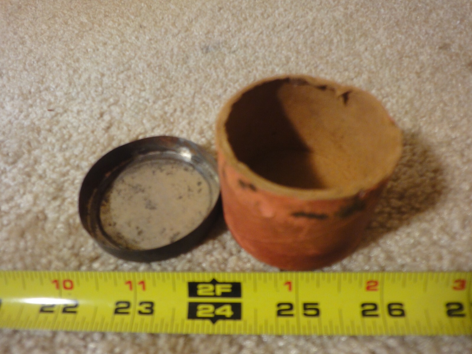 Vintage Gilbert Erector Set parts, pieces container. Tin metal, cardboard jar 2