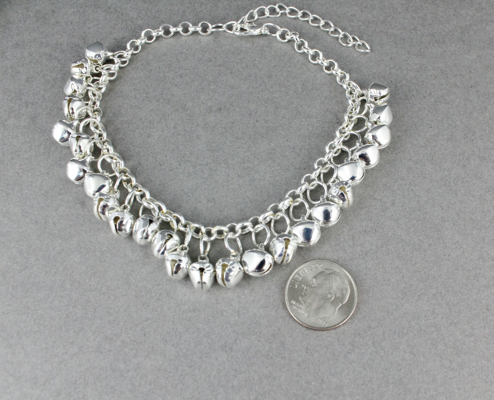 silver jingle bells adjustable anklet ankle bracelet belly dancer 8-10 long
