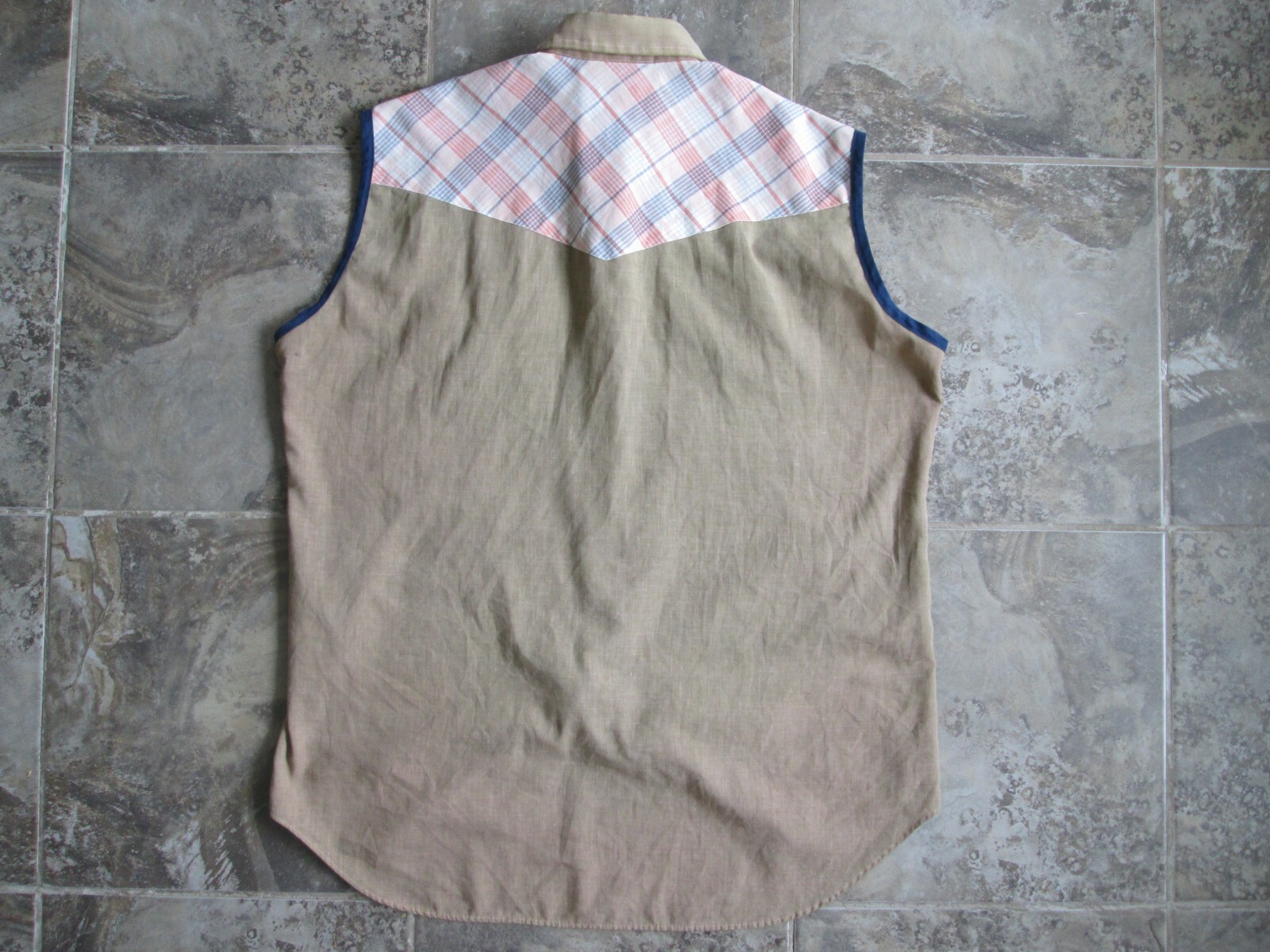 как выглядит VTG ATB Authentic Western Shirt Sleeveless Tank 16.5 Large Pearl Snaps Rancher фото