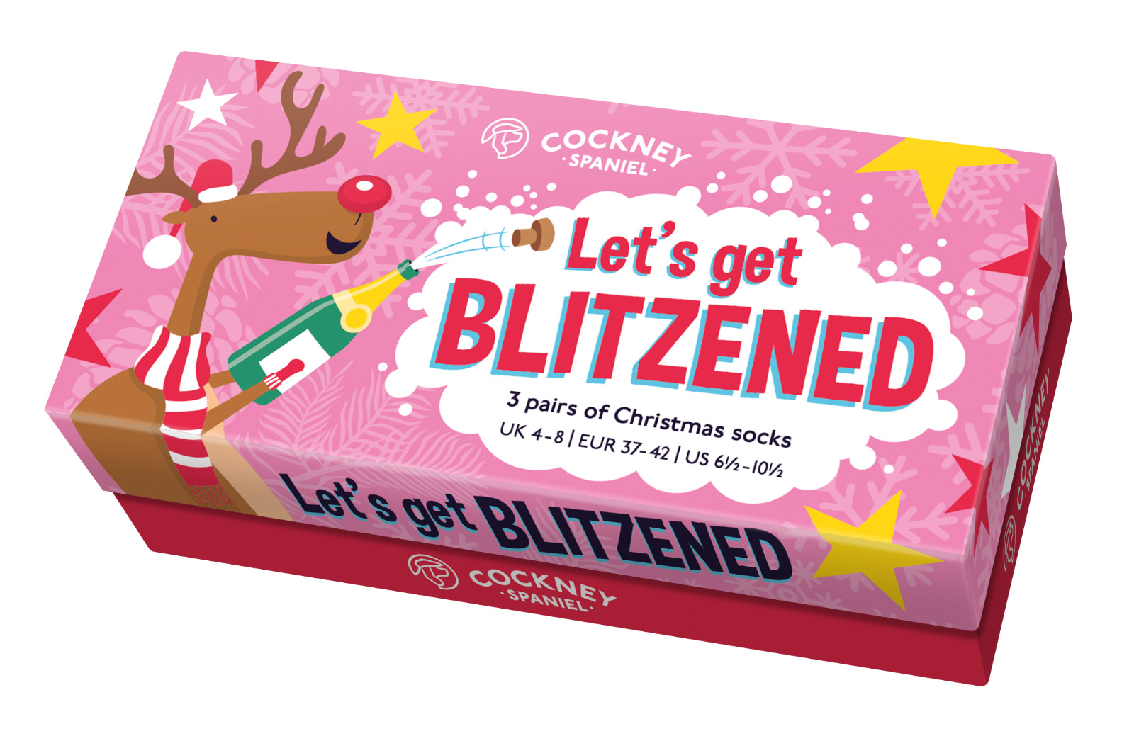 LETS GET BLITZENED 3 PAIRS LADIES CHRISTMAS SOCKS FOR LADIES UK 4 - 8 GIFT BOXED