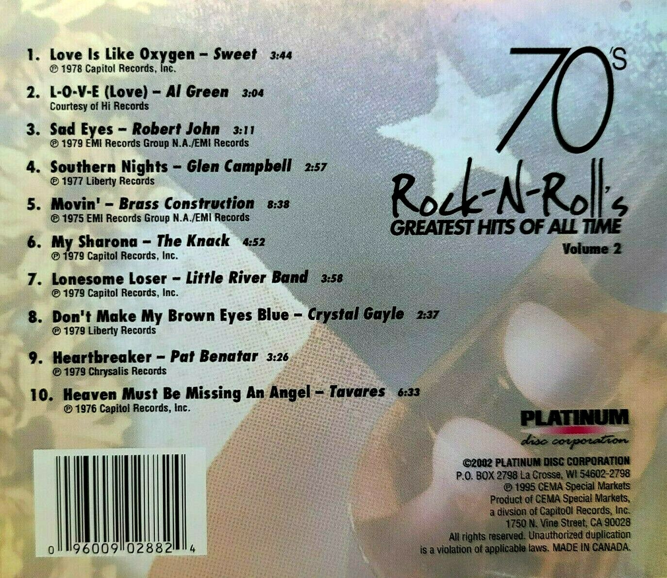 ROCK N ROLL S GREATEST HITS OF ALL TIME 70 S VOLUME - 2 2002 CD MINT COND