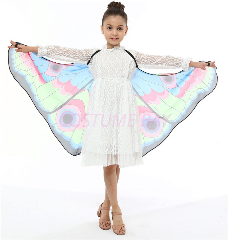 как выглядит Kids Girls Butterfly Wings Cape Princess Scarf Fairy Wrap Cloak Shawl Book Week фото
