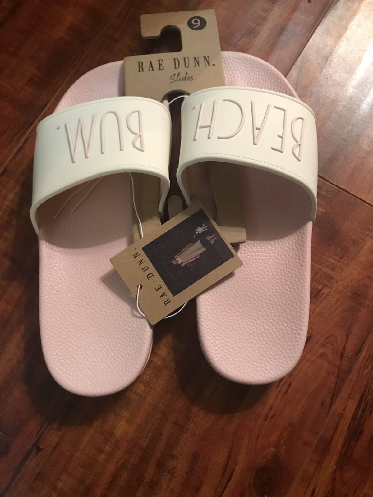 Rae Dunn Slides Size 9 Light Pink Off White Slippers Sandals NWT