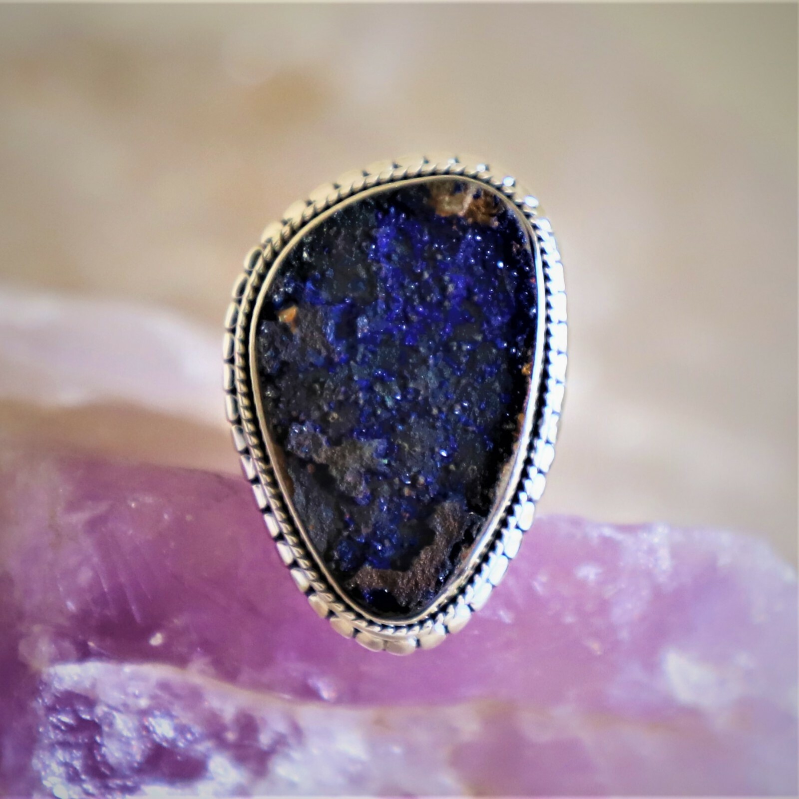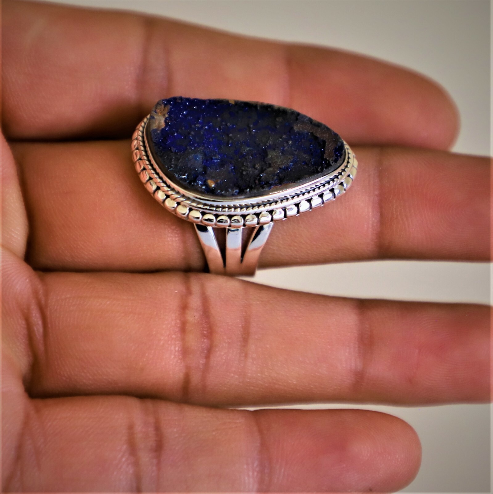RAW AZURITE MALACHITE NATURAL GEMSTONE 925 STERLING SILVER HANDMADE JEWELRY RING