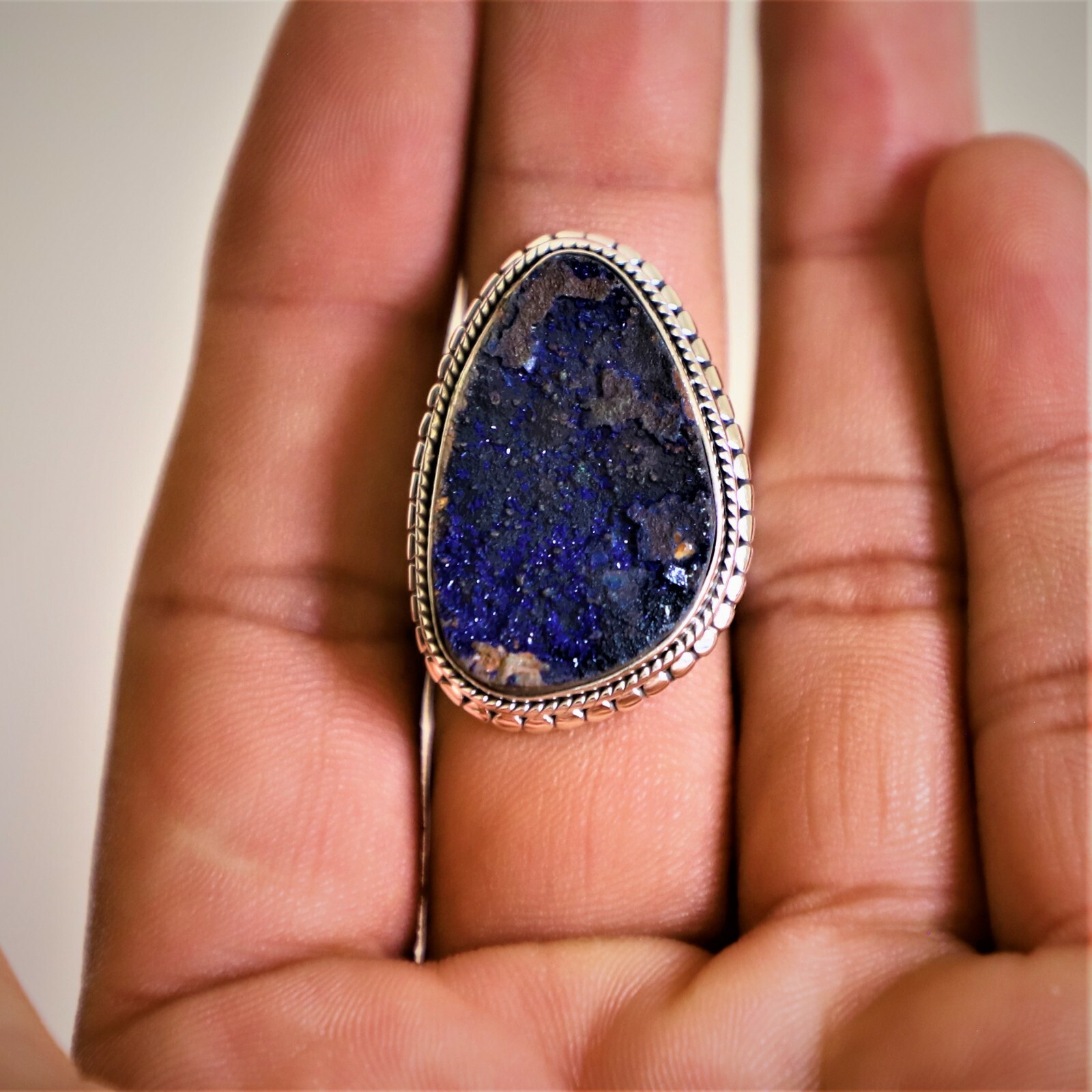 как выглядит RAW AZURITE MALACHITE NATURAL GEMSTONE 925 STERLING SILVER HANDMADE JEWELRY RING фото