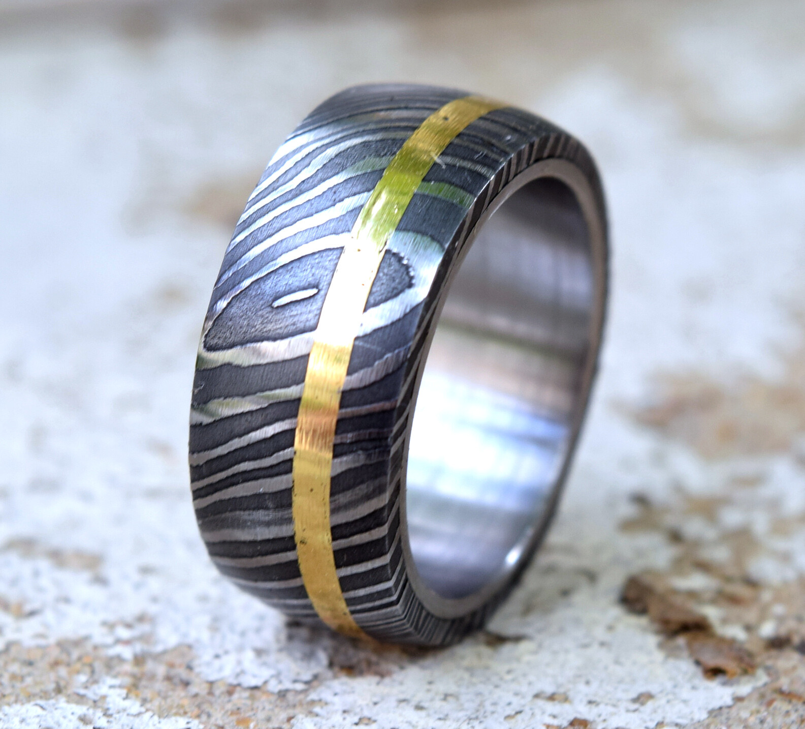 как выглядит 10mm Handmade Damascus Ring Silver Steel Sleeve 2mm Brass inlay Forged Band Mens фото