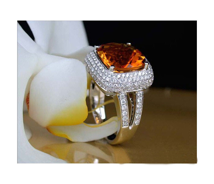 Glamorous Citrine Rose Cut Stone Engagement Wedding Ring 925 Sterling Silver