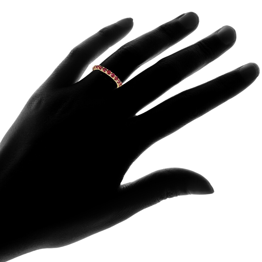 как выглядит Yellow Gold Flashed Silver Created Ruby 3mm Round-cut Eternity Band Ring, Size 9 фото