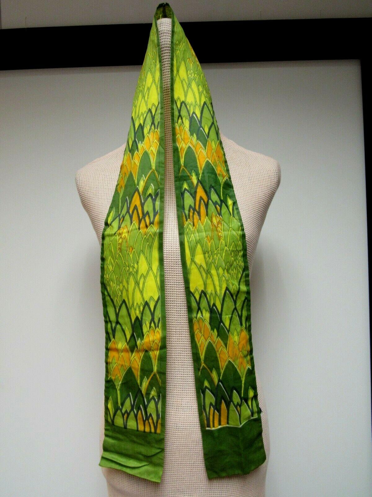 как выглядит VTG NASHARR FRERES 4 x 59 Long Scarf Kitten Bow Lined Olive Green Yellow GUC фото
