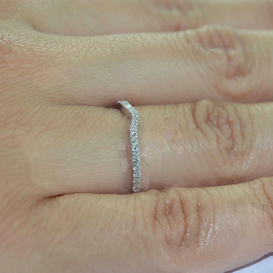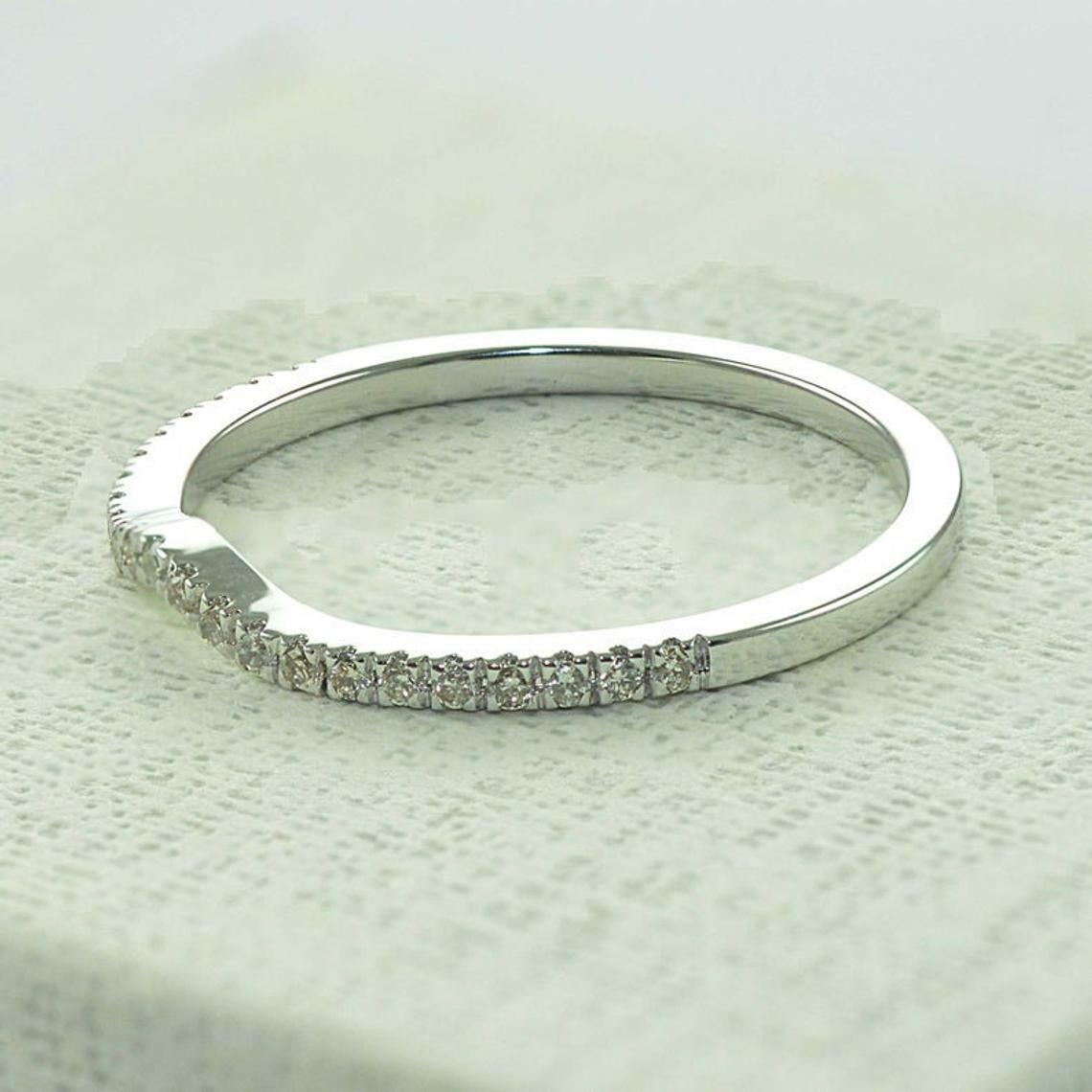 как выглядит 0.11Ct White Round Cut Stone Stackable Wedding Band Ring 925 Sterling Silver фото