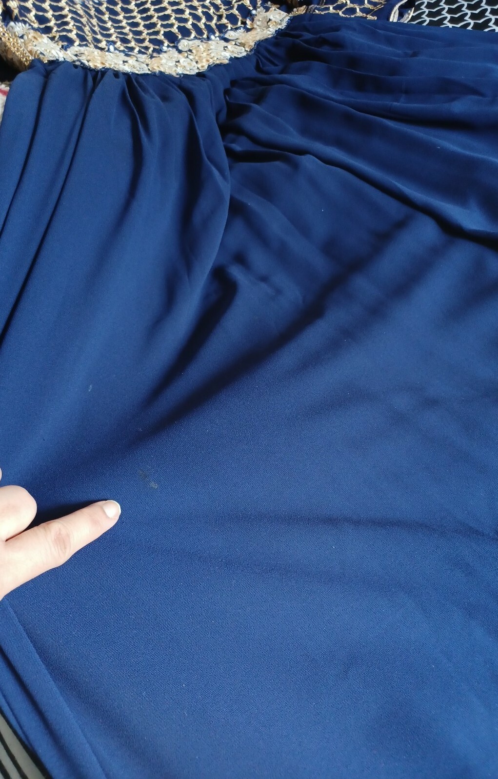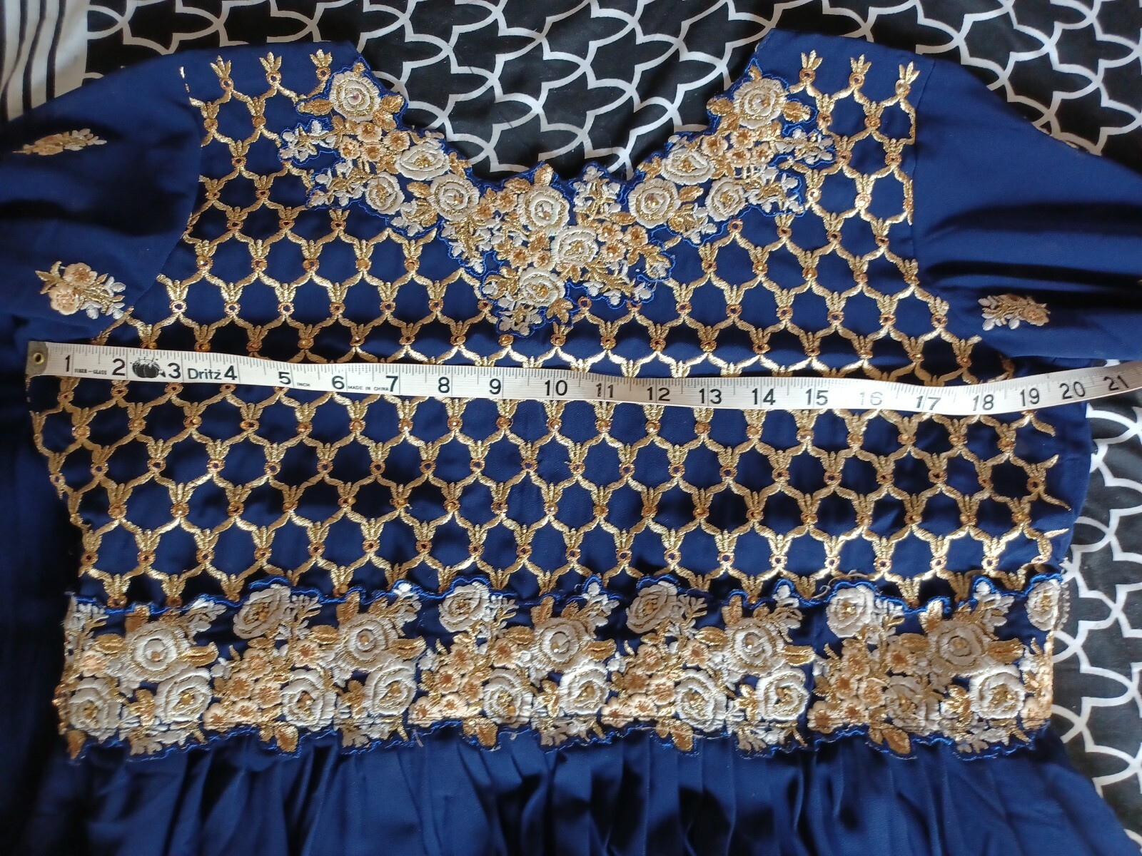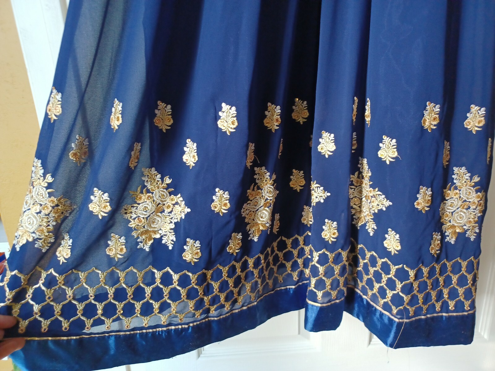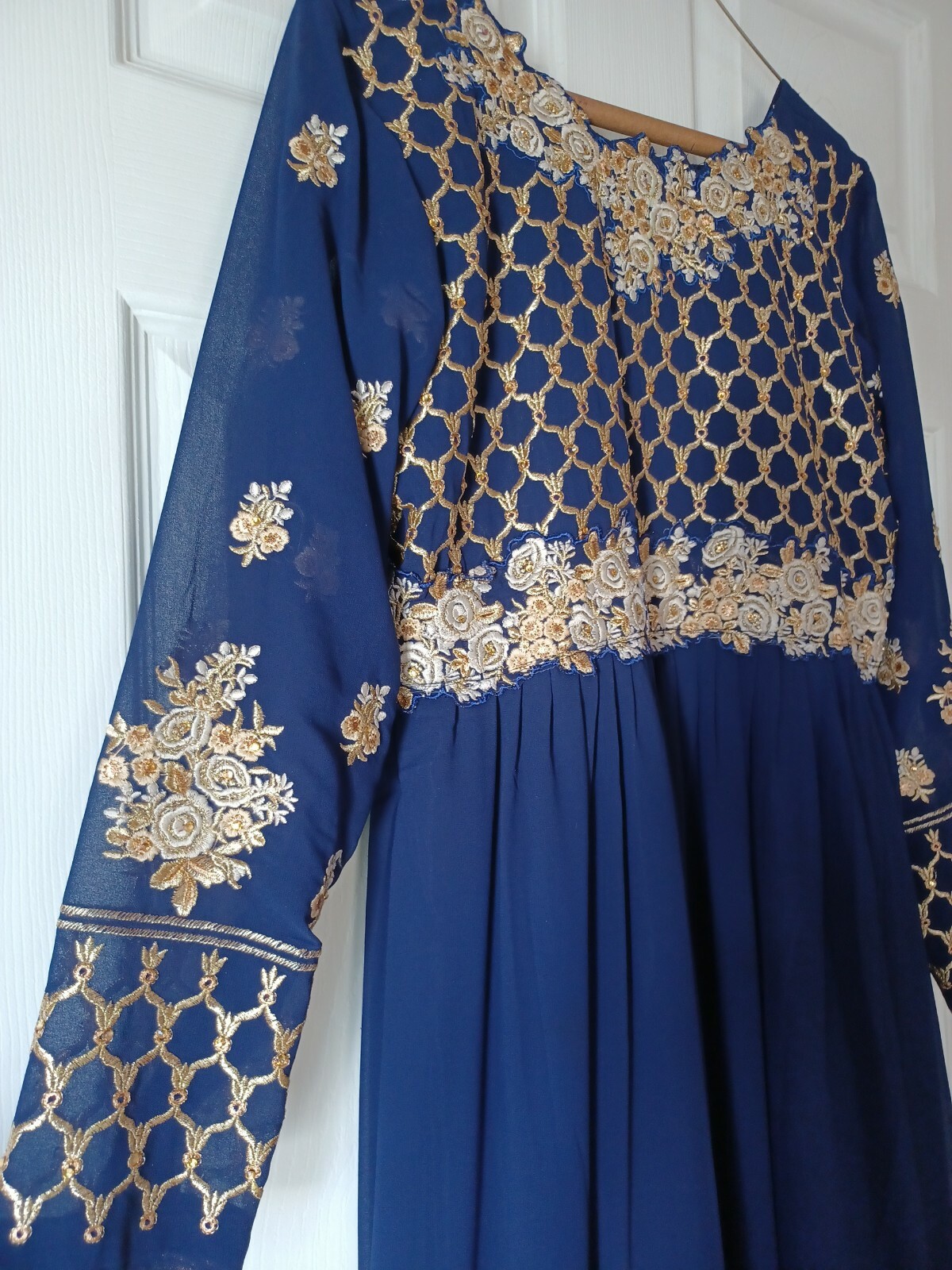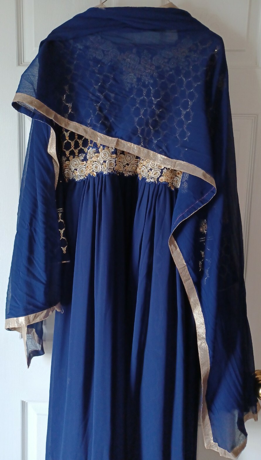 как выглядит Indian Pakistani Long Dress Embroidered Front N Back Sequins Blue Maxi Dress фото