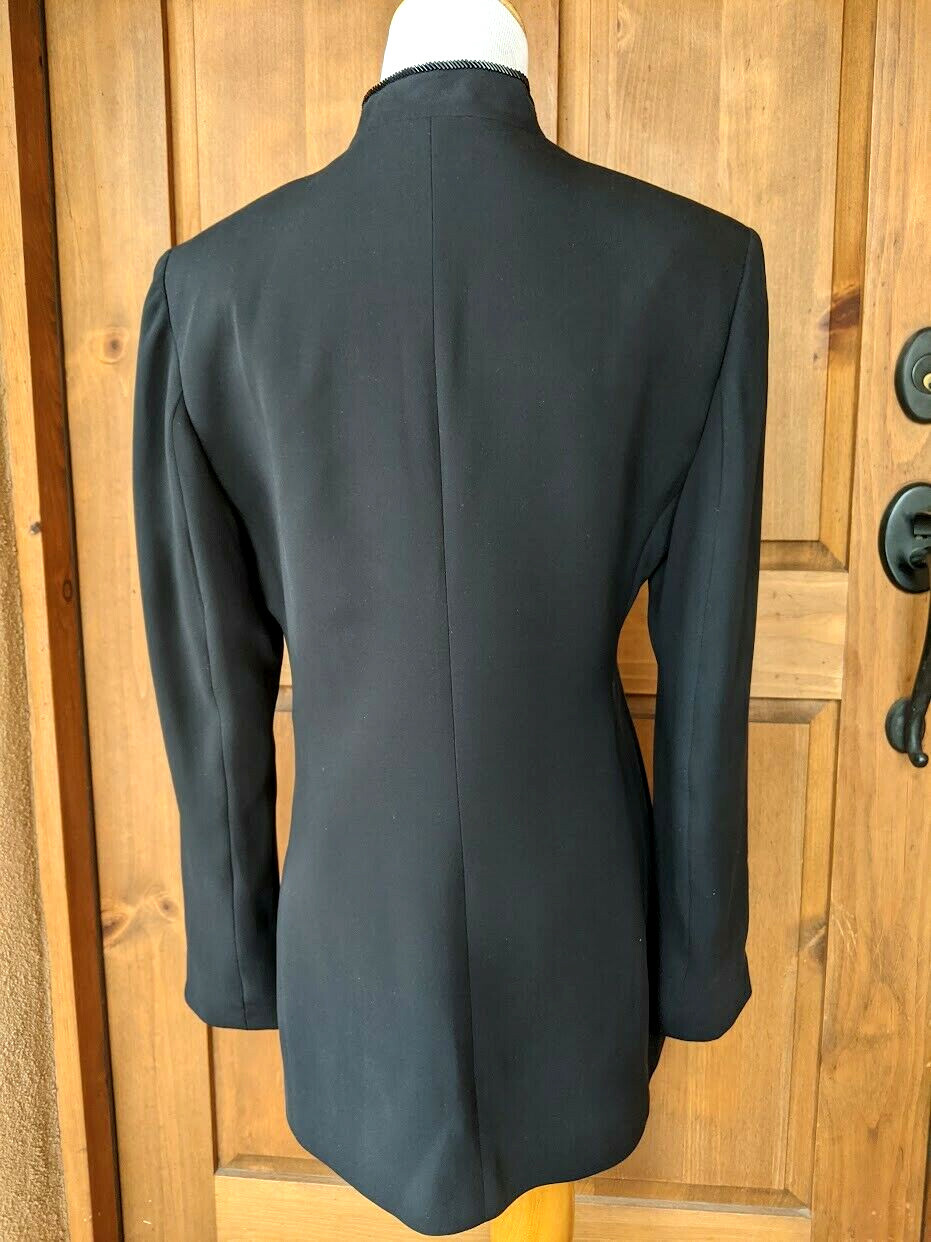 как выглядит LUISA SPAGNOLI Black Silk Evening Jacket Sz 44 S M Bugle Beads Italy Vtg 80s фото