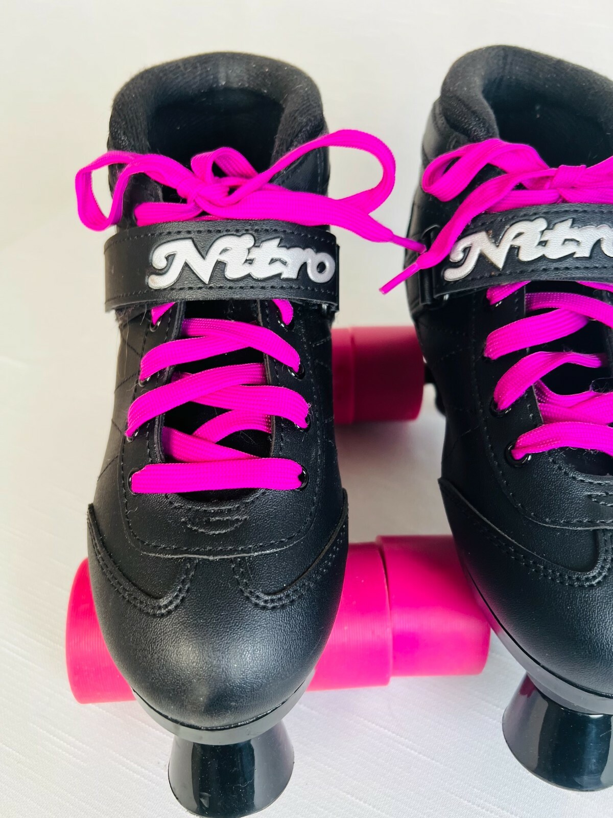 как выглядит Epic Super Nitro Pink And Black Quad Roller Speed Skates Size 5 фото