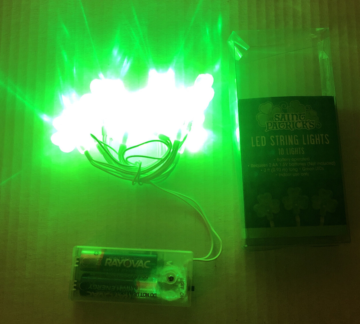 St. Patrick s Day LED Green Shamrock 10 Light String 2AA Battery Operated NEW