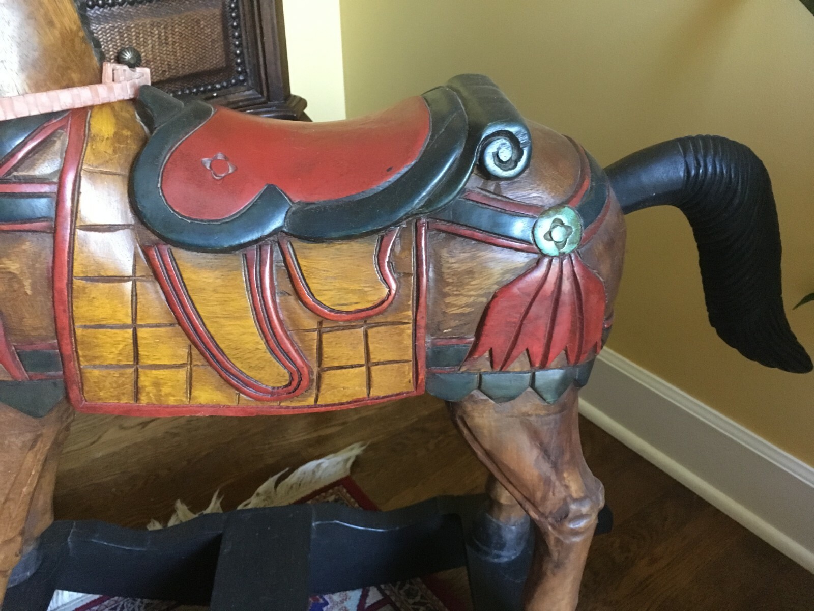 Mandalay Box Comp Large Carved Wooden Child's Riding Rocking Horse Home Decor