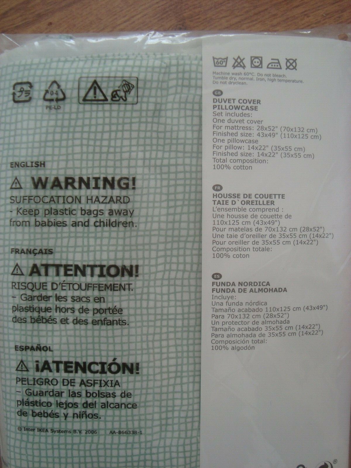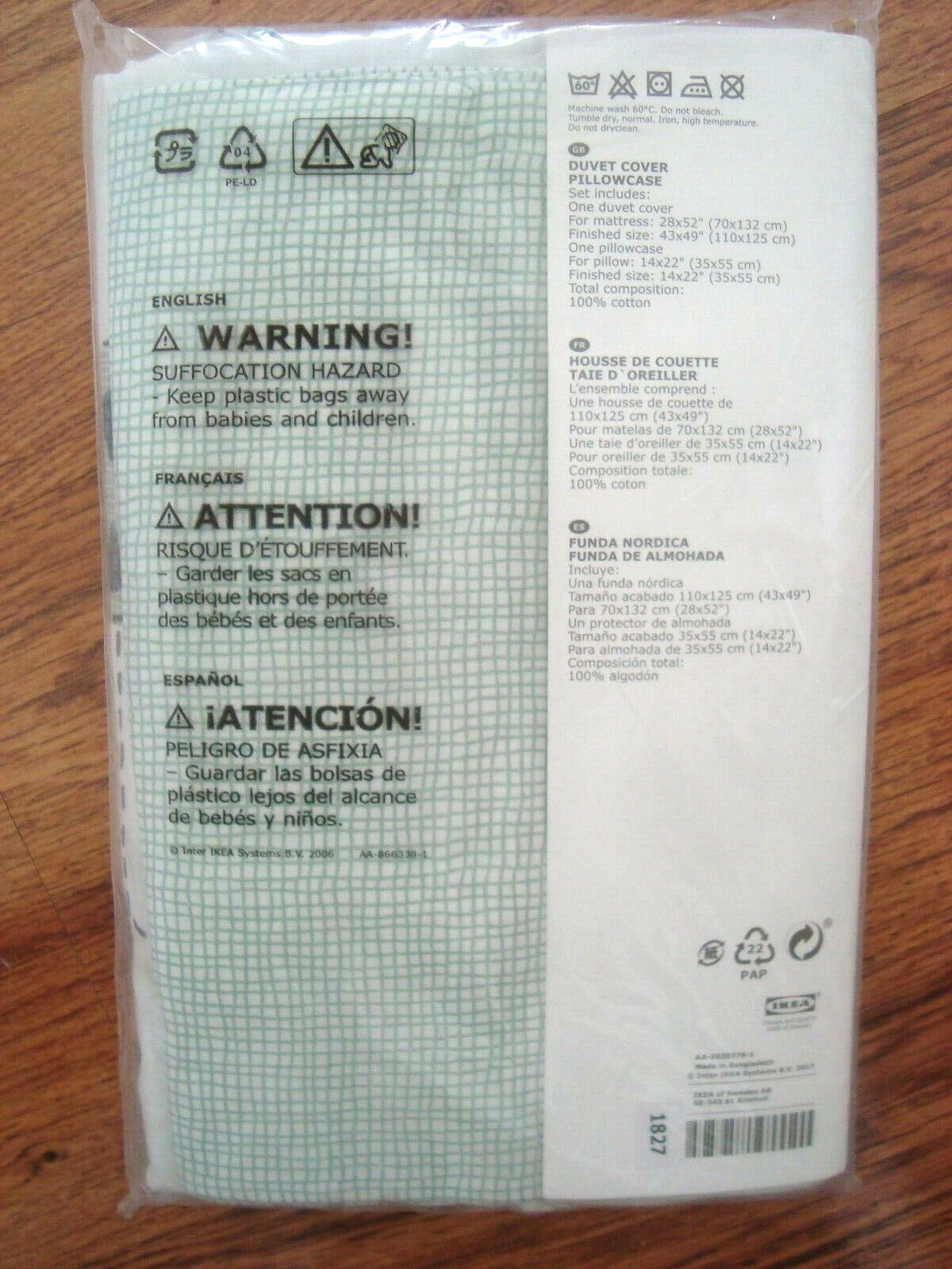 IKEA Crib Quilt Cover Pillowcase Cot Duvet set White Multicolor Green check