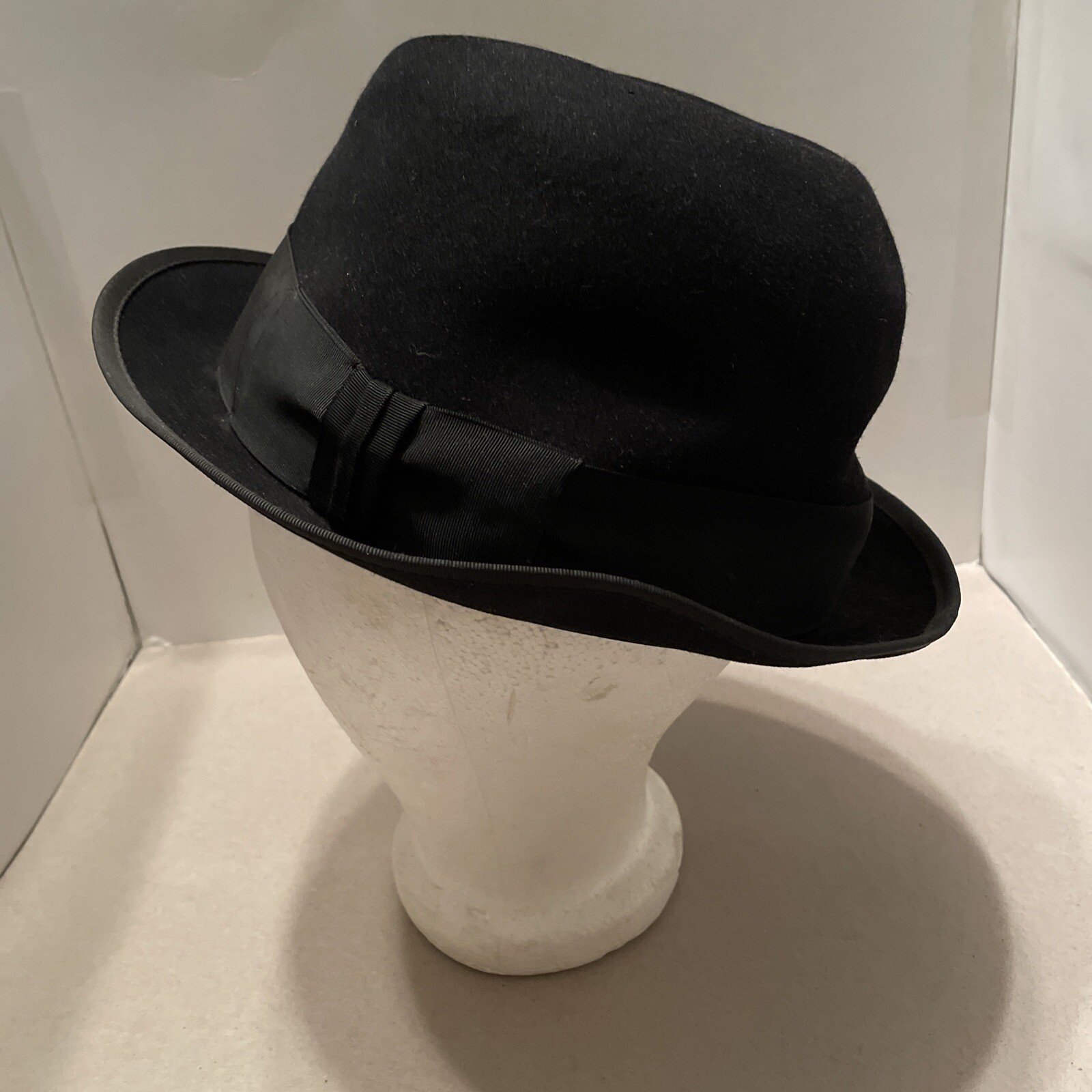 как выглядит Vintage Royal Stetson Bowler Derby Hat Size 7 1/8 Black NICE Red Liner Nice фото