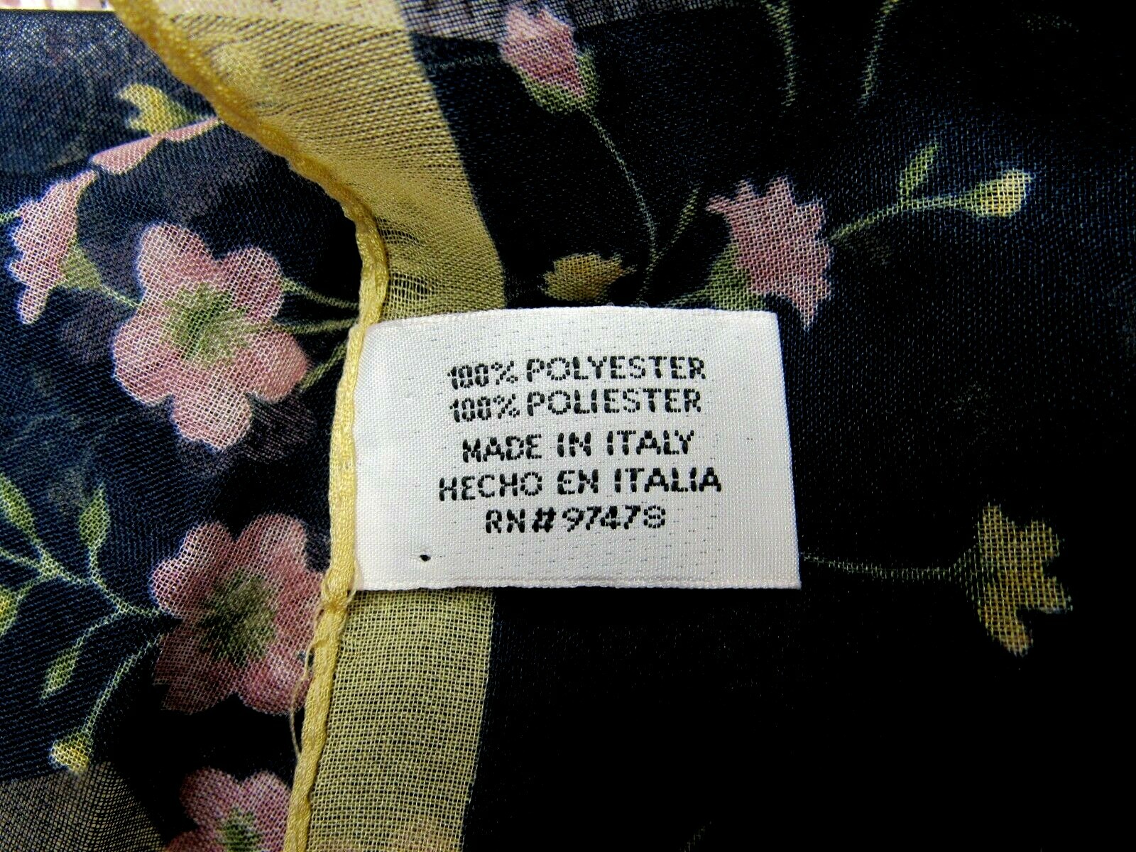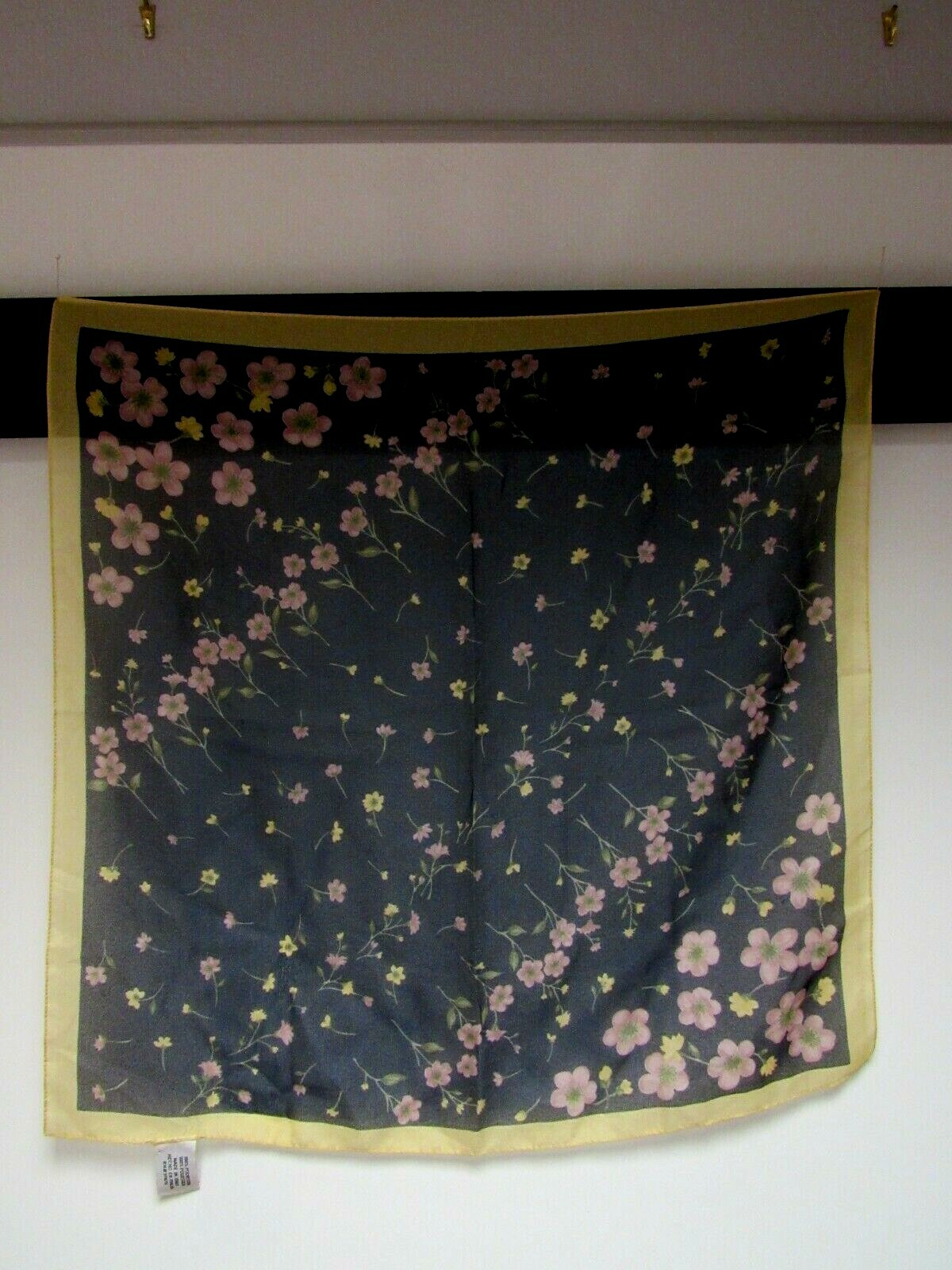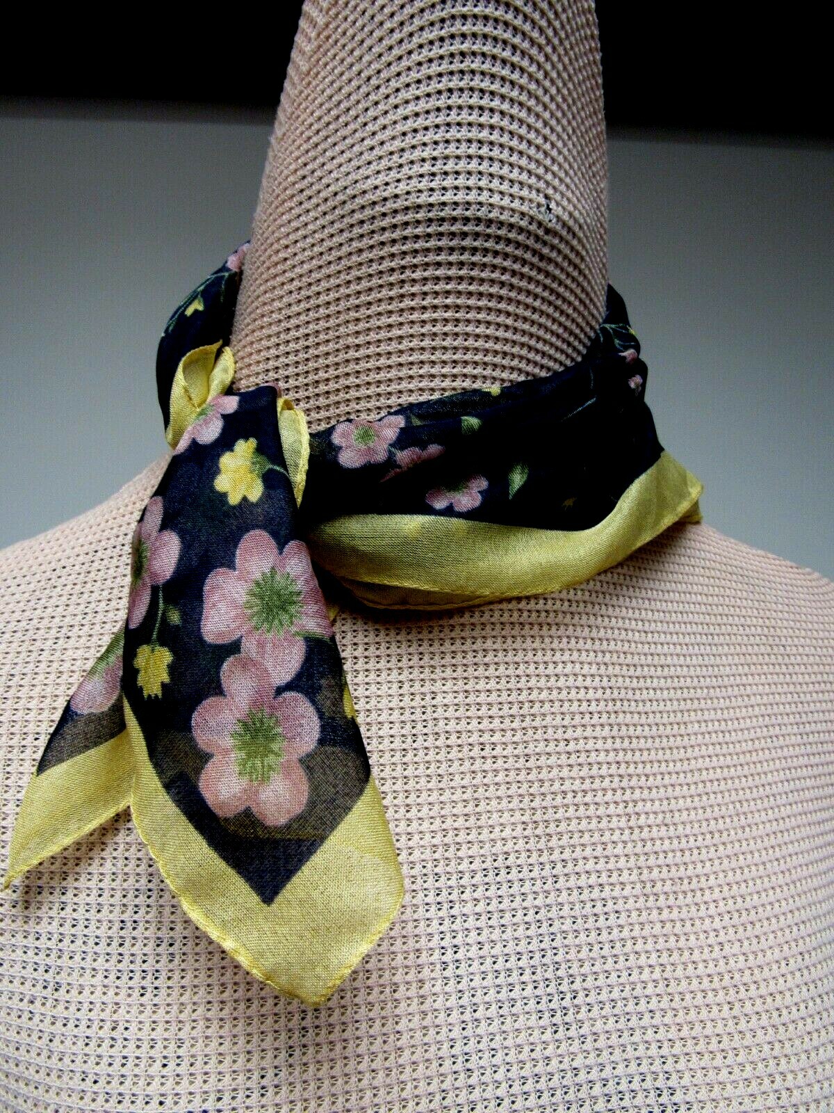 как выглядит Sheer Floral 20 Square Scarf Midnight Navy Mauve Pink Green Yellow Gold Italy EU фото