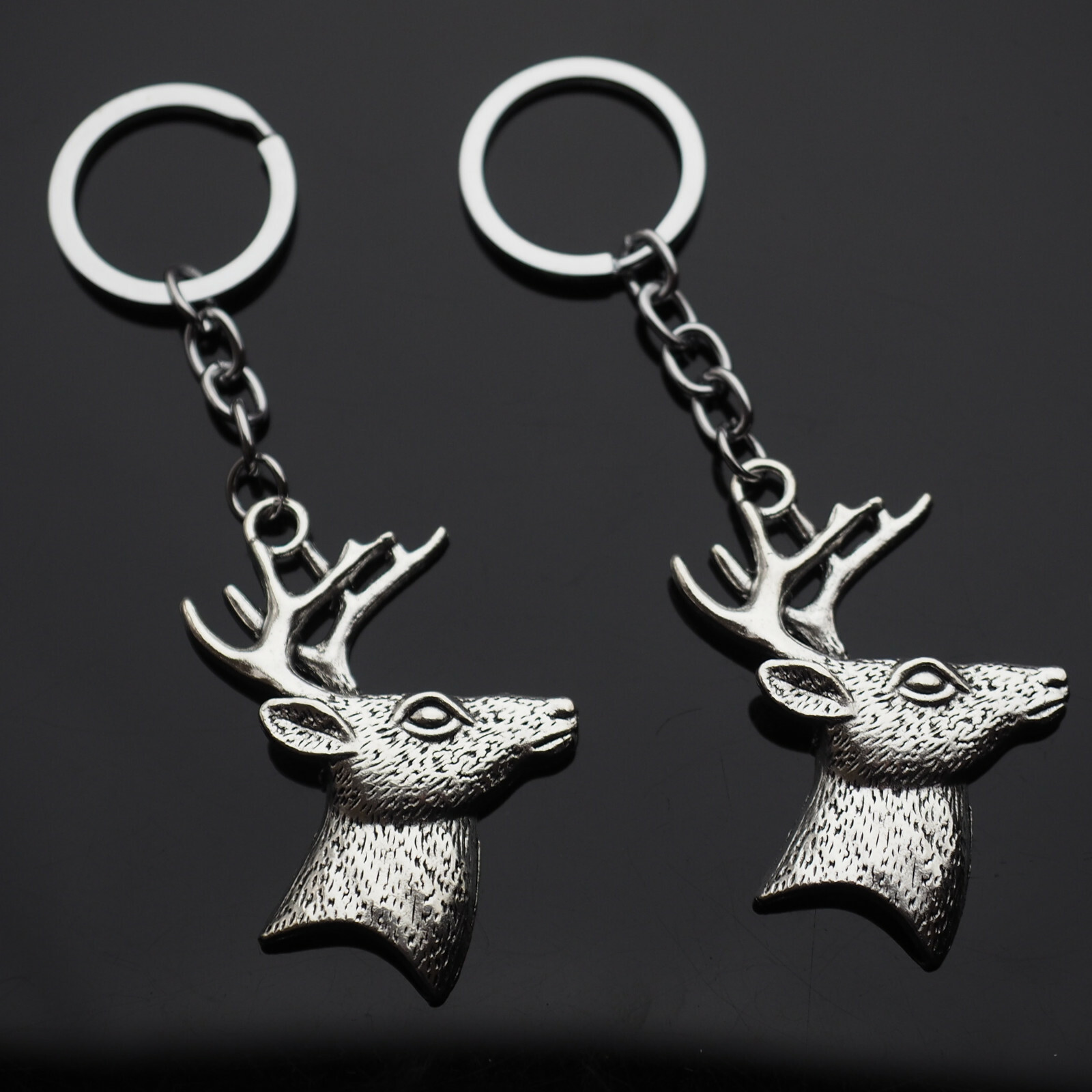 2x PCS Lot - Large Deer Buck Head Antler - Sportsman Hunting Hunter Keychain